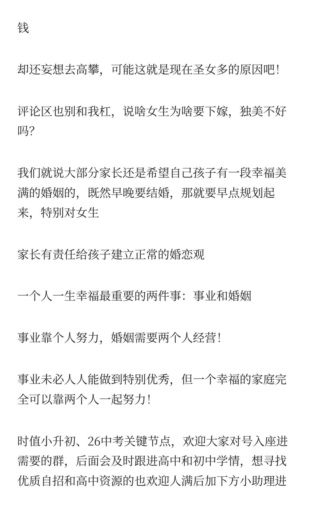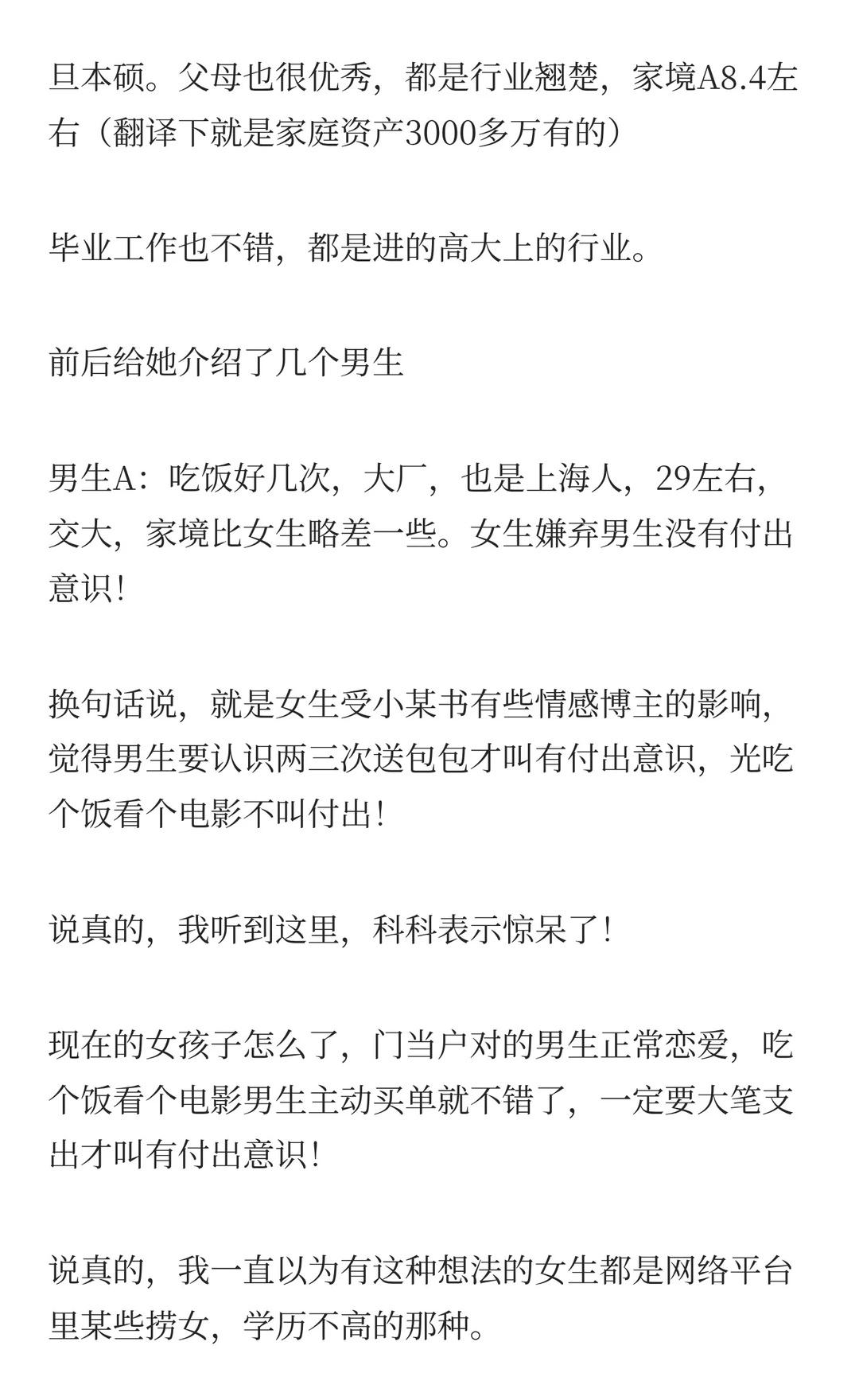 25岁的复旦本硕女生能找到资产上亿的家庭结 全文2000字左右 提倡正确的婚恋价值观 男女才认识 ,都不要收别人贵重礼物这是最基本的家教 幸福的婚姻需要自己经营。 找个喜欢的合的来的一起打拼不好吗 一定想嫁豪门,能吃得了这苦吗? 四校八大 事业型女性 择偶标准 现代婚恋观