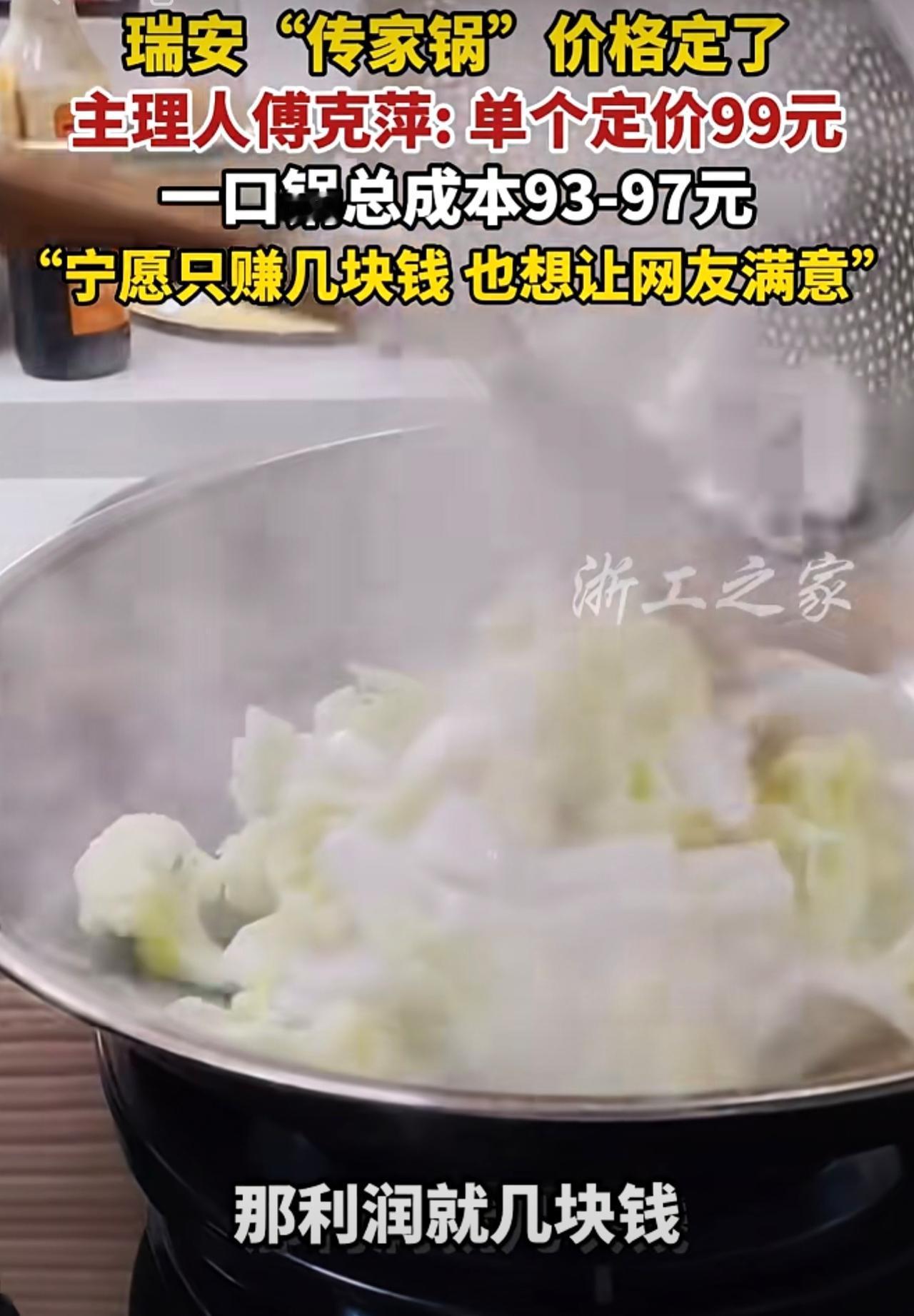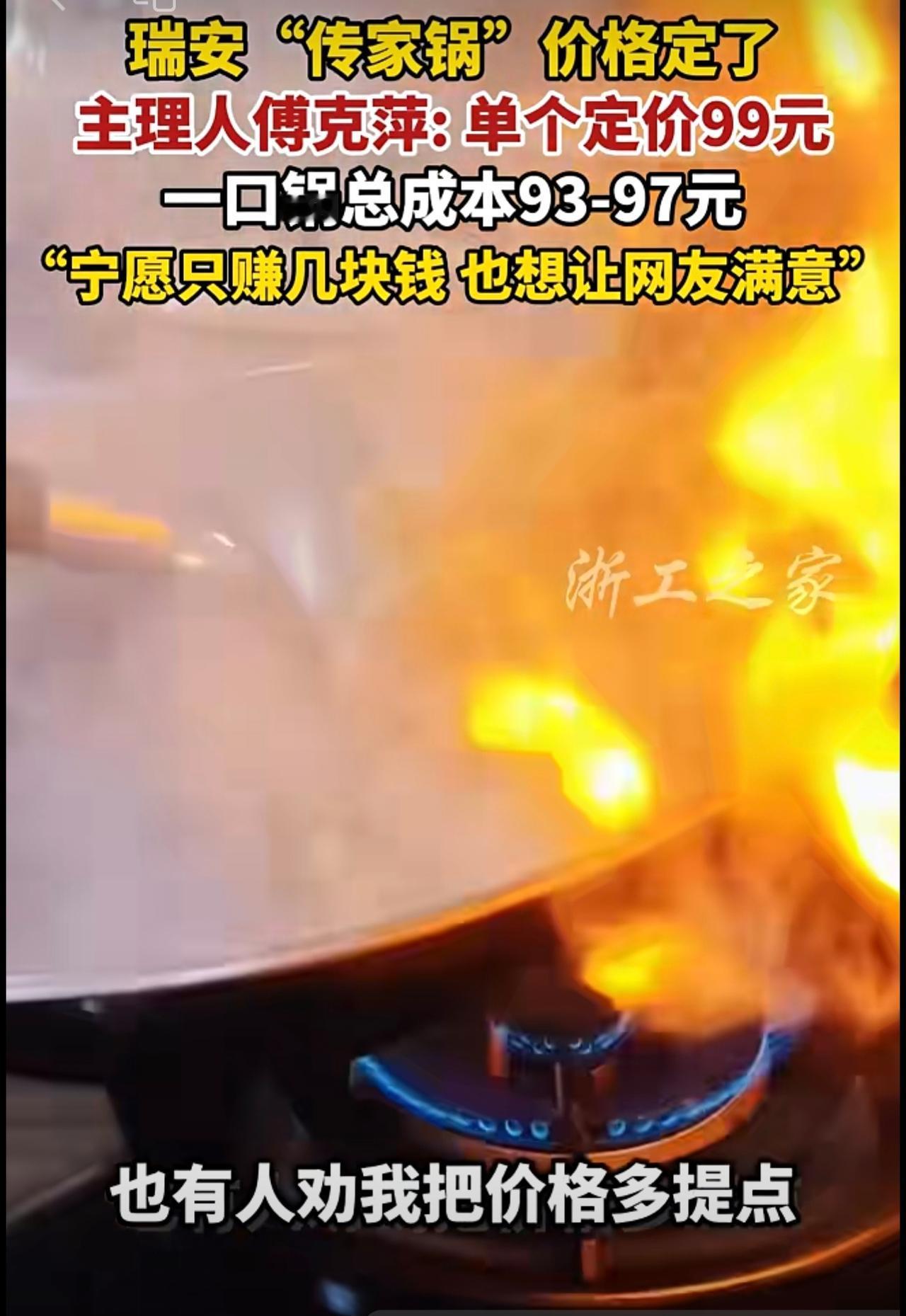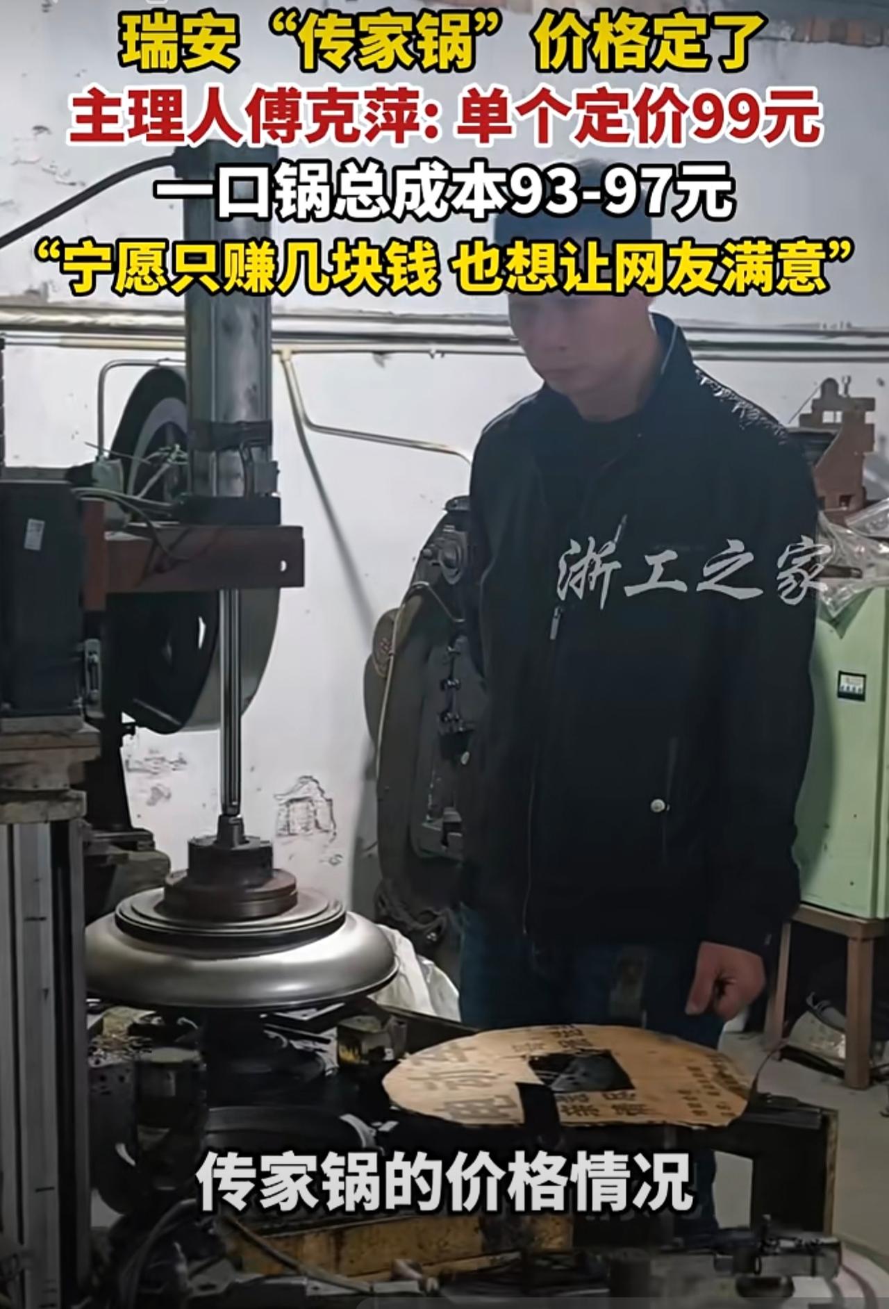 单个卖99元,瑞安“传家锅”价格定了!主理人傅克萍:成本是93-97元(来源:瑞安融媒)