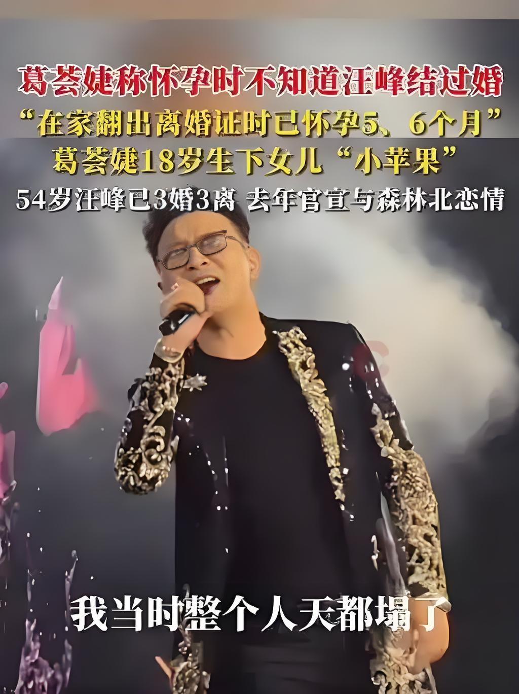 2025年11月,葛荟婕直播自曝怀孕时遭汪峰隐瞒婚史。她称17岁与汪峰相恋,18岁怀孕,在家翻出离婚证时已孕五六个月,当场崩溃。葛荟婑痛斥汪峰欺骗感情,自己曾深陷爱情选择相信,如今往事重提,再度引发网友对汪峰情史的争议。