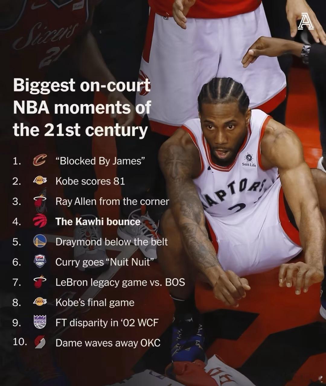 2000年代最重要的时刻排名, 你赞同吗??1. 詹姆斯追帽伊戈达拉2. 科比单场81分3. 雷阿伦底角三分4. 伦纳德压哨绝杀76人5. 追梦格林挥拳詹姆斯腹股沟6. 库里奥运会决赛“晚安”三分7. 詹姆斯死亡之瞳8. 科比生涯谢幕战9. 02年季后赛湖人对阵国王单节27罚赢下比赛10. 利拉德再见三分绝杀雷霆