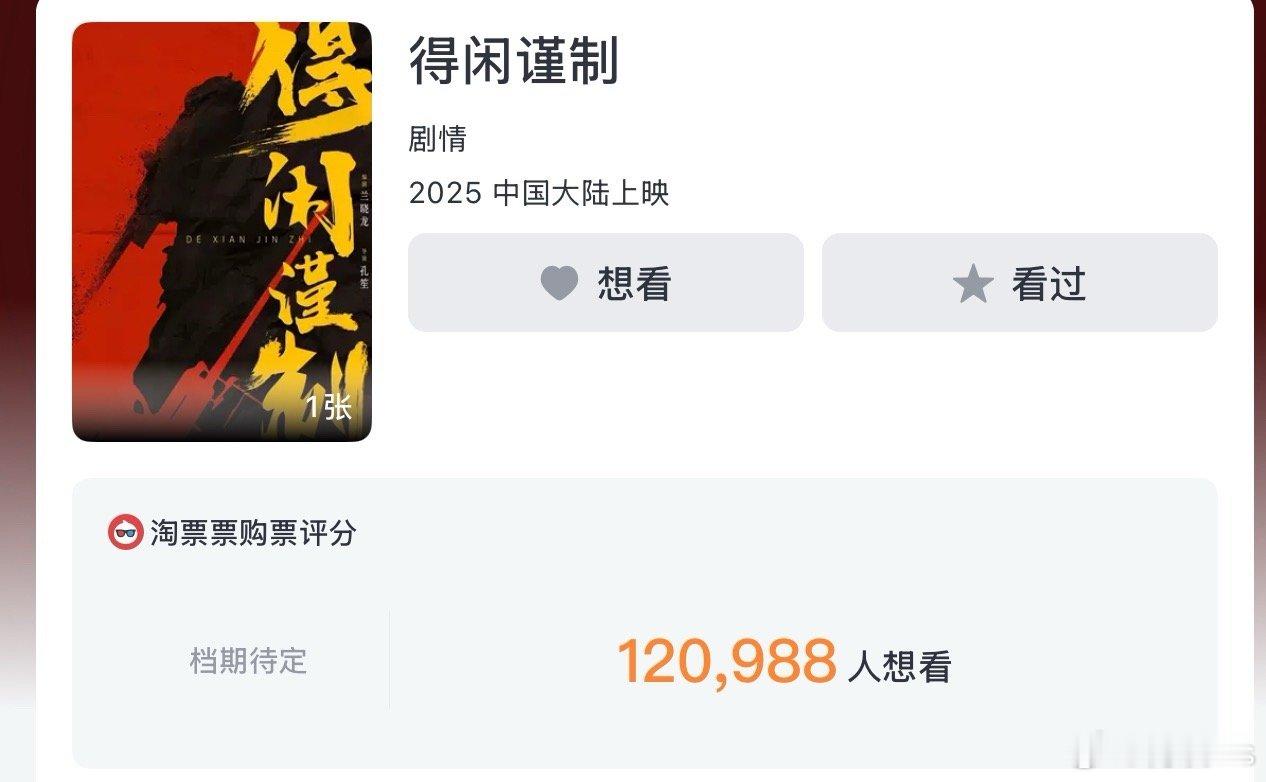 肖战主演《得闲谨制》猫眼想看10.5万,淘票票想看12万,官博18.5万关注,抖12.8万关注,热度太大了