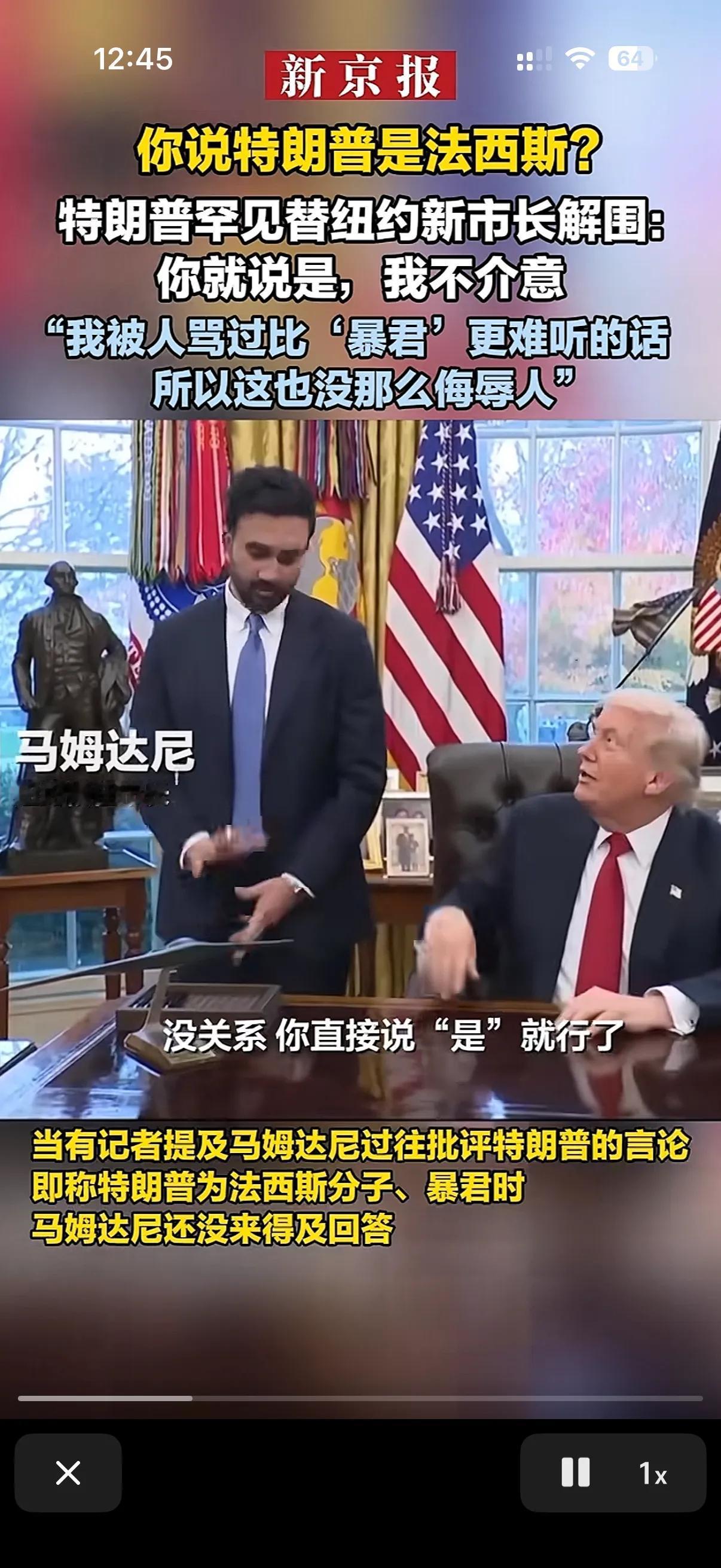 太刺激了,难道美国民主党要和共和党和好了? 谁能想到当初隔空骂战的新纽约市长马姆达尼居然和特朗普相谈甚欢了! 当初恨不得奥否认纽约市长合法性的特朗普居然会替马姆达尼说好话了! 日前在白宫马姆达尼居然和特朗普同时出现在记者采访里! 当记者提问新人纽约市长马姆达尼石佛说过特朗普是法西斯的时候,特朗普居然在旁边帮助马姆达尼结解围! 特朗普声称丝毫不在意这些,因为,自己听过很多更严厉和糟糕的话! 特朗普还声称,马姆达尼石一个很优秀的人! 似乎和iu两人都忘记了就在半个月前了两个人还隔空骂战呢! 不得不说两个人都是成熟的政治家! 世界上没有什么伙伴只有利益! 看啦两个人私下已经达成了合作!
