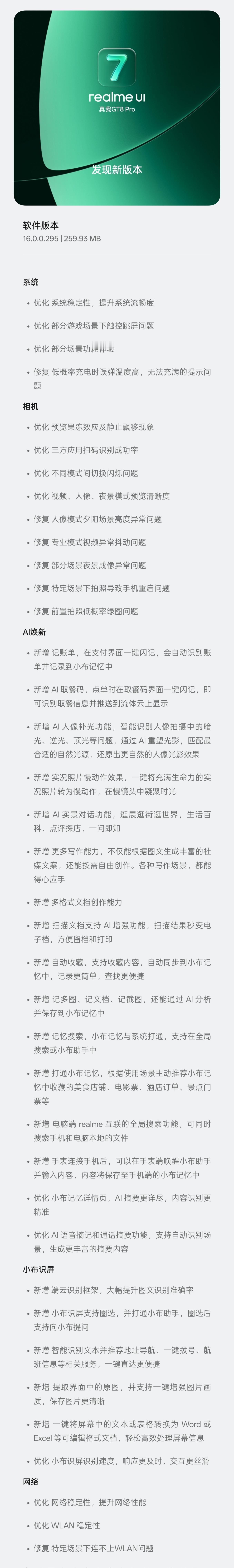 真我GT8 Pro 295系统OTA,终于支持取餐码和AI记账了