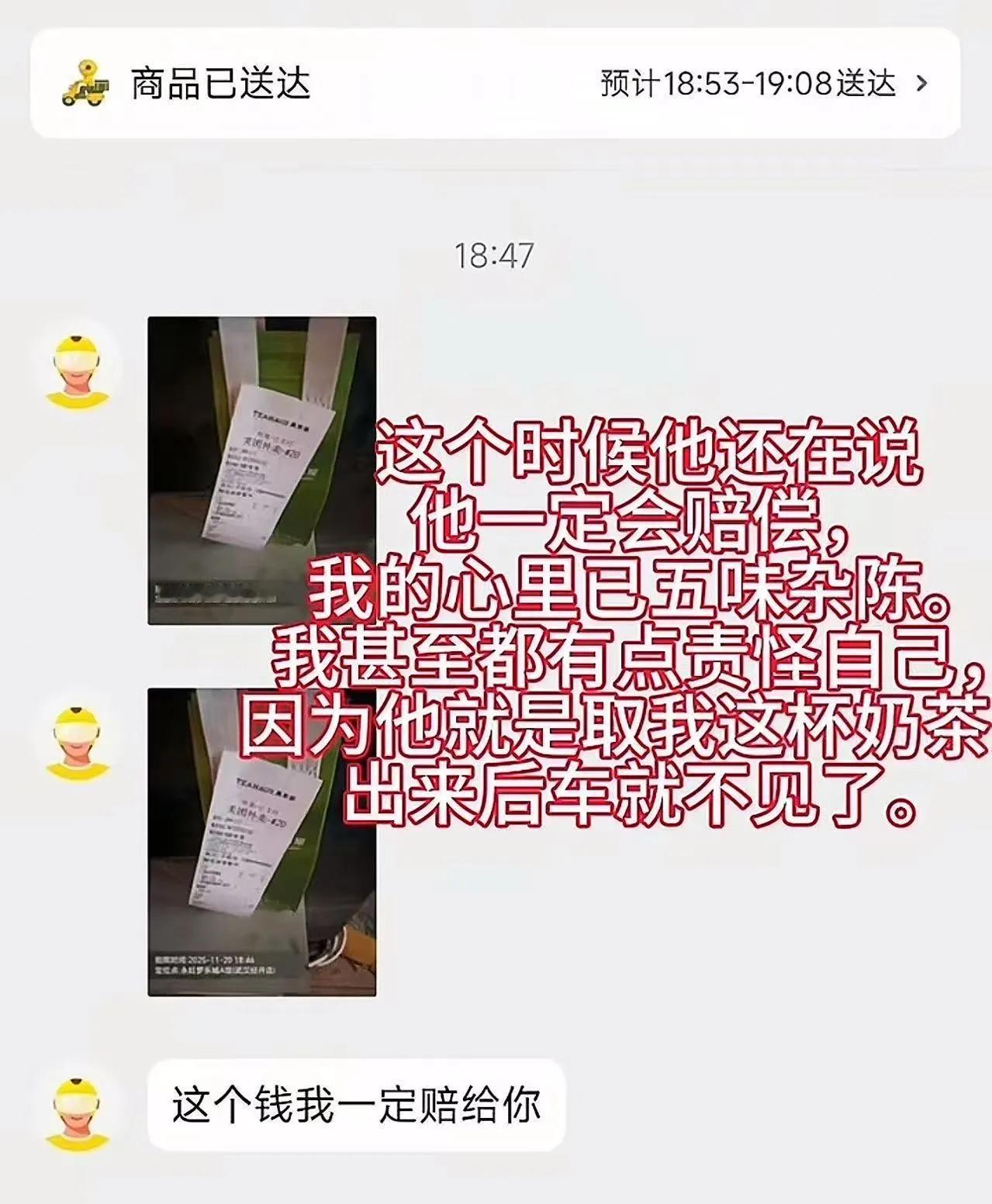 外卖员丢了电动车还哭着要赔奶茶钱,顾客一句话暖哭他! 傍晚女子点的奶茶迟迟没