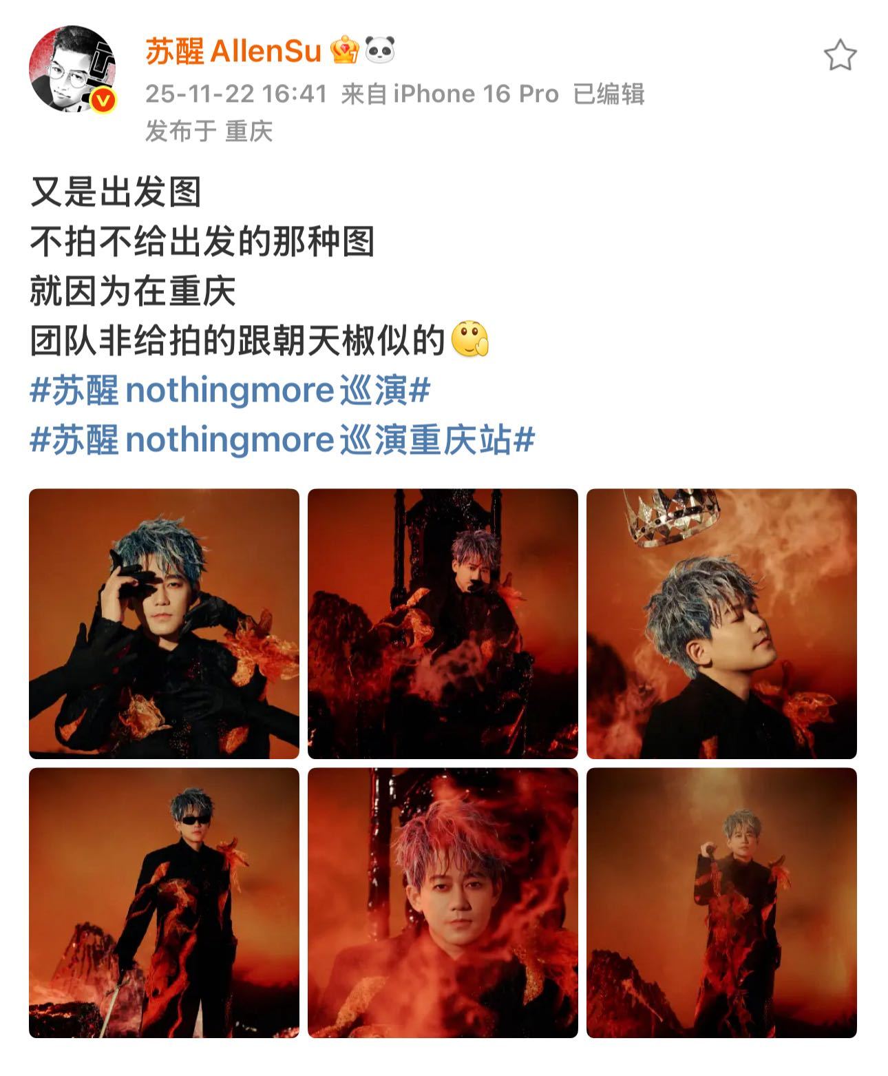 苏醒爆改朝天椒有被辣到,苏醒团队在出发图里加了什么,气氛变得好热!醒哥也没想到自己能在重庆cos冬天里的一把火辣朝天椒,这造型放在火锅里都得是特辣的哈哈哈!