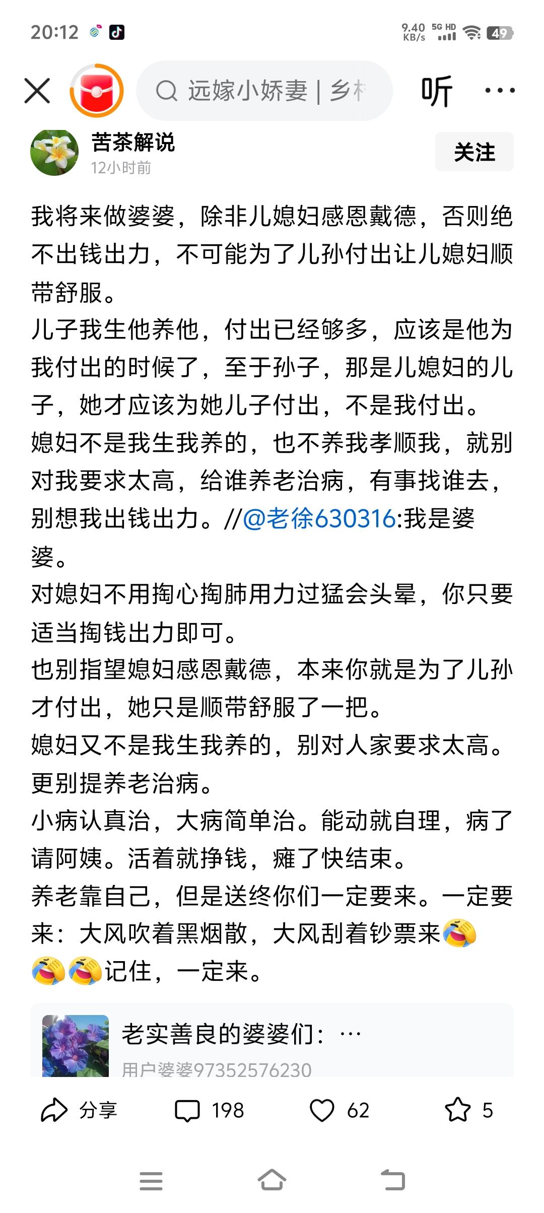 遇到这种婆婆,真是倒了八辈子血霉!无论你如何付出,怎么掏心掏肺,始终是一个外人! 这种婆婆总认为,养育自己的孙子是儿媳妇一个人的责任!伸手帮一把,就要儿媳妇感恩戴德。却往往忽视了自己儿子的责任。他们只认为孙子是他们的孙子,但是抚养的责任全在儿媳妇这一个外人身上。如果遇到这种公公婆婆,真是倒了八辈子的血霉!