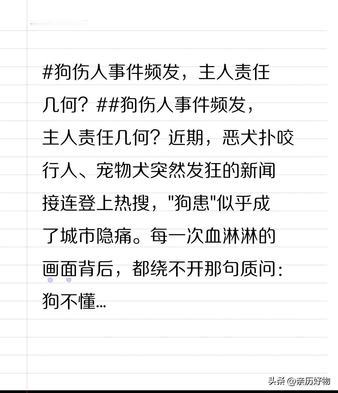 近期,恶犬扑咬行人、宠物犬突然发狂的新闻接连登上热搜,"狗患"似乎成了城市隐痛。每一次血淋淋的画面背后,都绕不开那句质问:狗不懂事,人也不懂事吗? 法律早已给出底线:民法典明文规定,饲养动物造成他人损害,主人须承担侵权责任;若能证明受害人故意或重大过失,才可减轻或免除责任。换句话说,狗绳不是可有可无的装饰品,疫苗本不是抽屉里的废纸,它们都是"免罪金牌"生效的前提。可惜现实中,总有人把公共绿地当私人"跑狗场",把"我家狗不咬人"挂嘴边,直到悲剧发生才想起道歉和赔偿。 责任不仅是赔钱道歉那么简单。北京一名女童被藏獒撕咬致死后,狗主因"以危险方法危害公共安全罪"获刑三年;杭州某保姆未拴绳致宠物犬咬伤邻居,也被判过失致人重伤。可见,一旦达到刑事立案标准,狗主人可能面临实刑。法律用判决重申:养狗不是私事,而是关乎他人生命安全的公共行为。 要避免下一只狗、下一个受害者出现,关键在"人"而非"狗"。出门拴绳、戴嘴套、按时疫苗、评估品种脾气,是主人对城市的最低尊重;遇到怕狗的老人孩子,主动收短绳子绕开,更是基本公德。监管部门同样得硬起来:提高违法成本,把屡教不改者列入"养犬黑名单",让"随手执法"像查酒驾一样常态化。 狗伤人的账,终究要算到人头上。唯有把"可爱"与"可控"划上等号,把"爱狗"与"爱人"放在同一天平,才配谈"毛孩子"带来的温暖,而不是恐惧。
