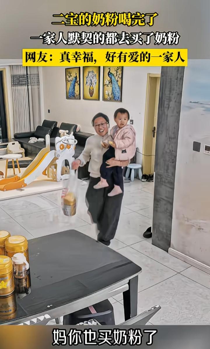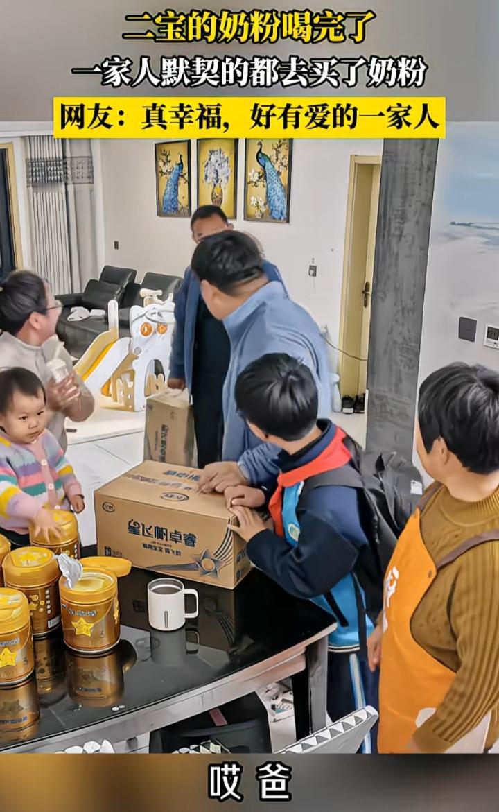 这一家人也太有爱了! 二宝的奶粉没了,一家人各自出门后,默契的都买了奶粉回来,这下好了,孩子一年的奶粉都够了,也太有爱了吧!看得出来,都很爱孩子,奶粉没了都记在心里,赶紧就买回来了 像这样的家庭太少见,像我家就是,孩子的奶粉快没了,我给家里人说,老公:“不是才买的吗,怎么喝的这么快啊,那你买去吧。” 婆婆就一直劝:“饭也吃的可以了,再不喝奶粉了吧,喝牛奶也行……” 公公:“喝什么奶粉,喝牛奶去!” 好羡慕这个家庭氛围,满满的爱[比心] 图片及素材源自网络,侵权必删