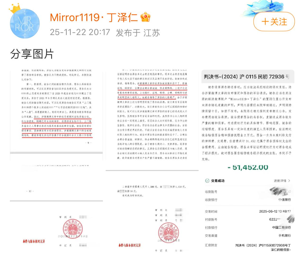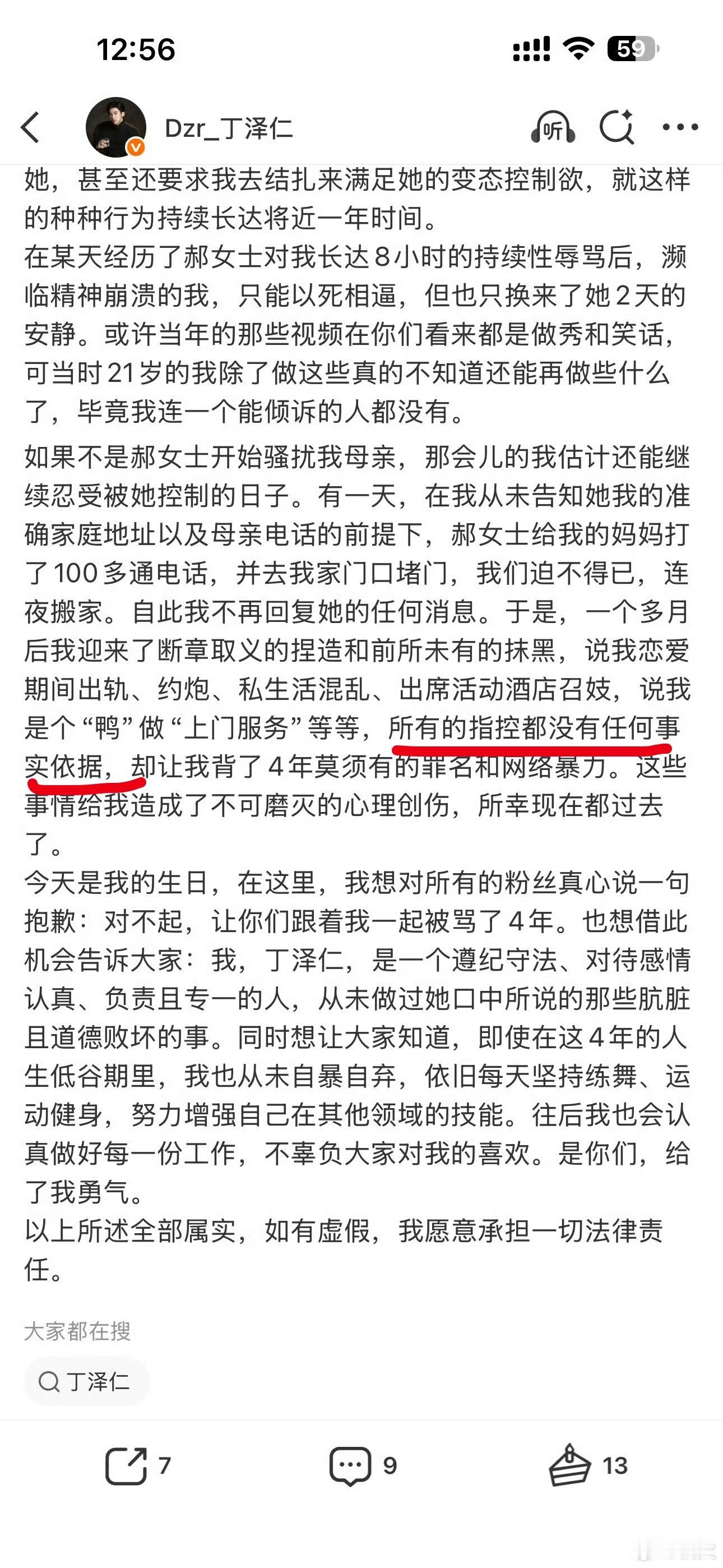 天辣~丁泽仁唯一的姐发了判决书:今天的判决书:“恋爱期间出轨...、私生活混乱...上门服务滥交之人等事实表述内容具有基本的事实依据”前几天丁泽仁生日发长文还说所有的指控都没有任何事实依据......而且法院认定他和唯一的姐之间存在恋爱关系!!!