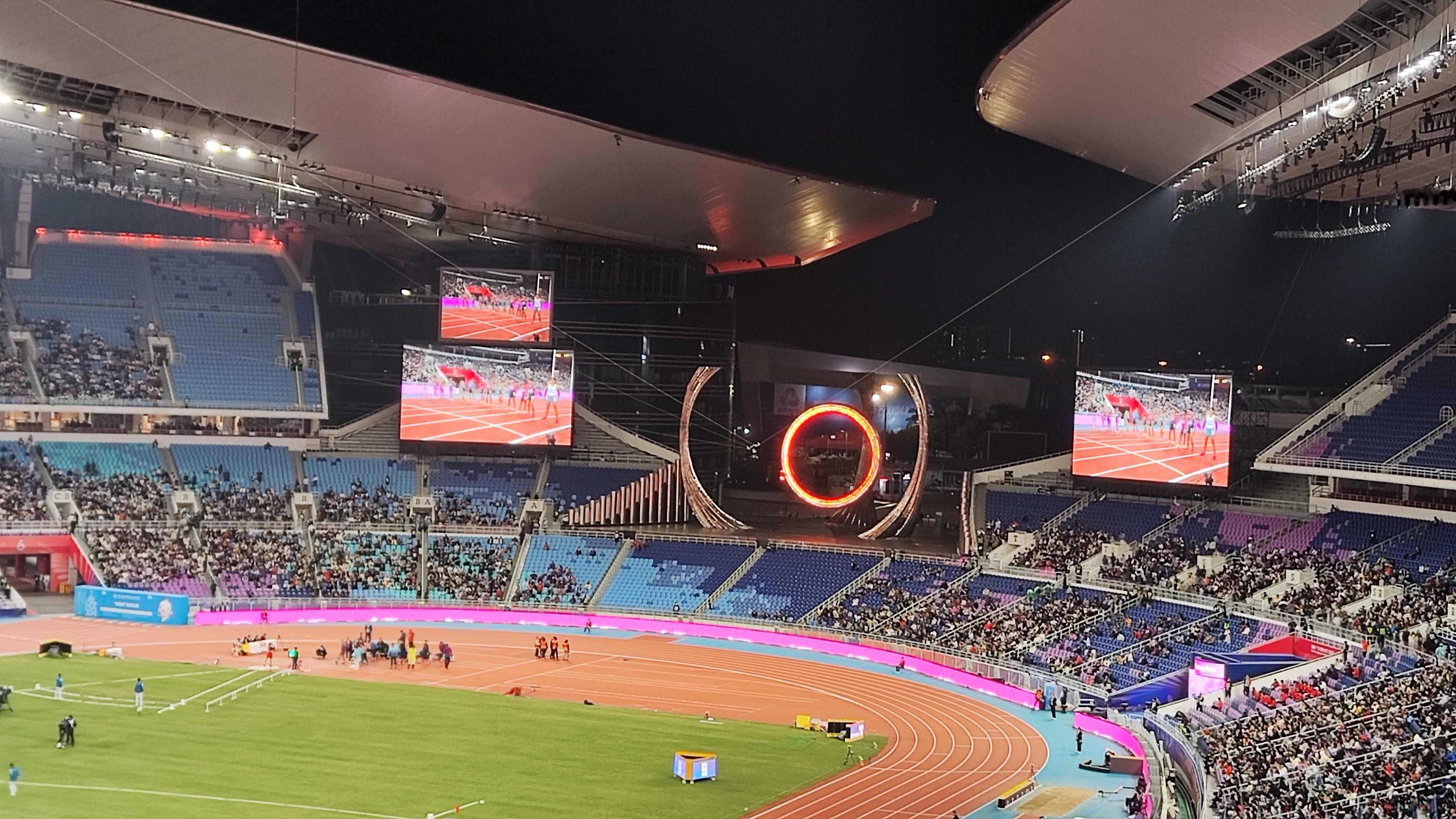见识到了,场地大就是无敌。一个场地上可以同时举办四项决赛 虽说山顶位真是看不清人