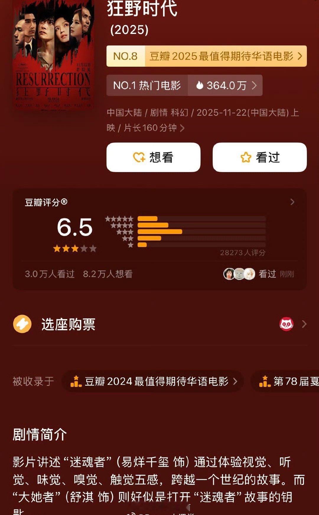 易烊千玺 舒淇《狂野时代》豆瓣开分6.5,大多数人打三星