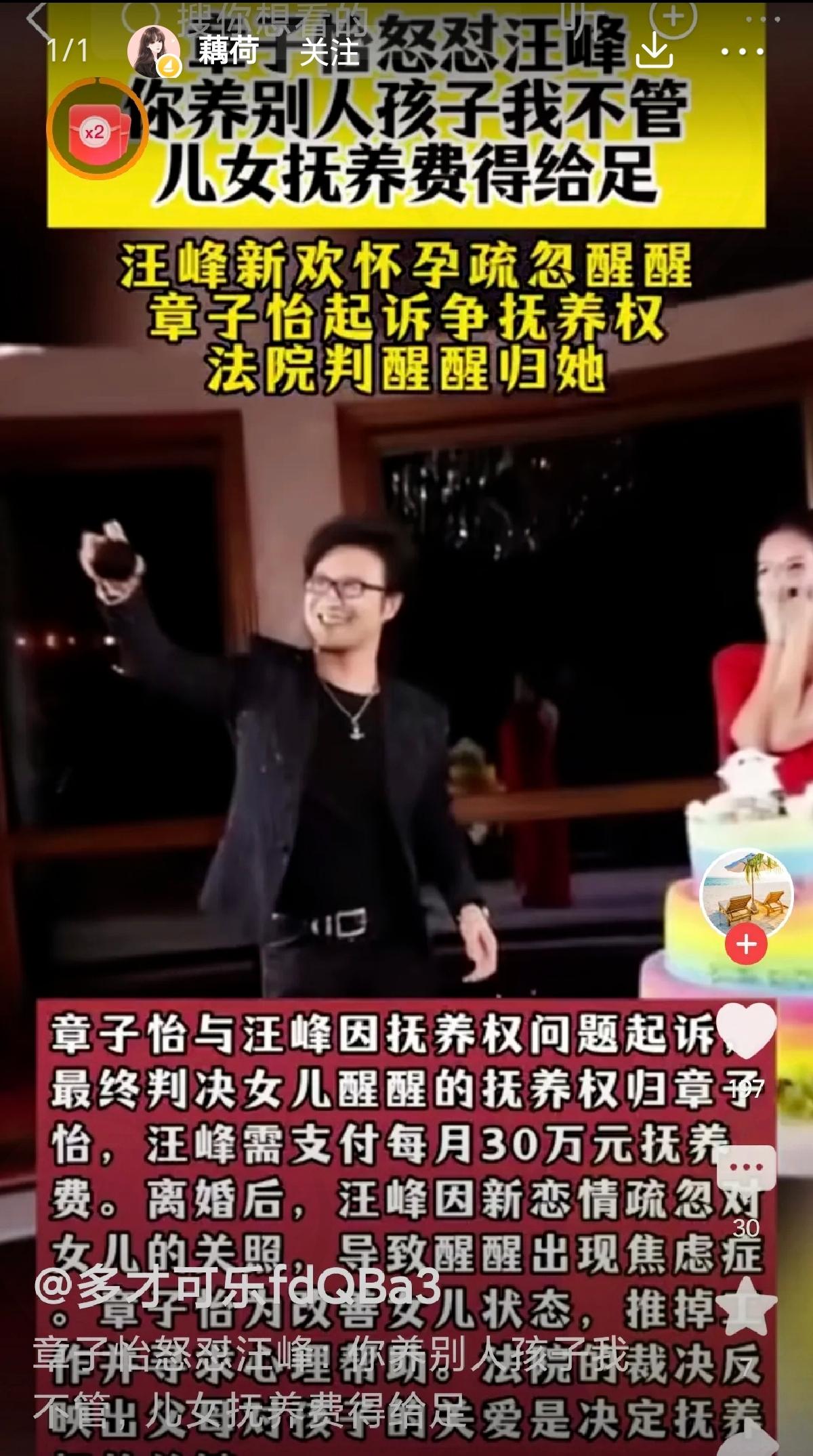 汪峰新恋情刚曝光还传女友怀孕,前妻章子怡直接起诉争抚养权,每月30万抚养费更是惊掉众人下巴,这瓜属实够劲爆!大家怎么看呢?汪峰 汪峰情感故事 章子怡女儿 汪峰情感瓜