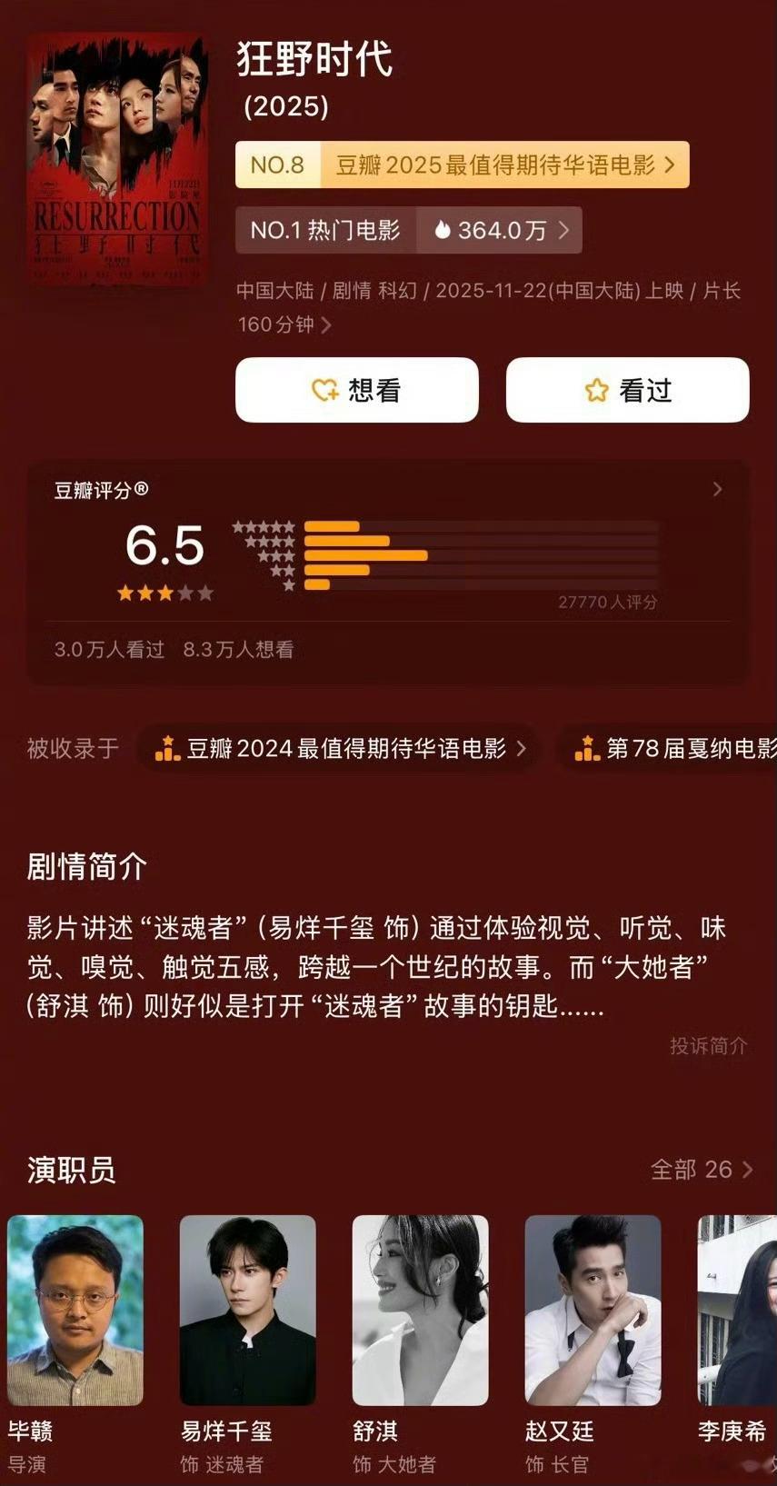 《狂野时代》豆瓣6.5分!演员易烊千玺的演技值得你们去电影院看!!!