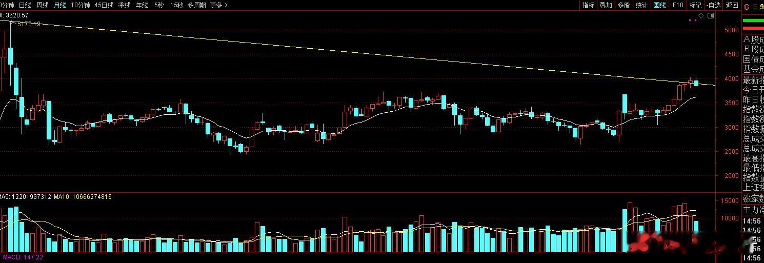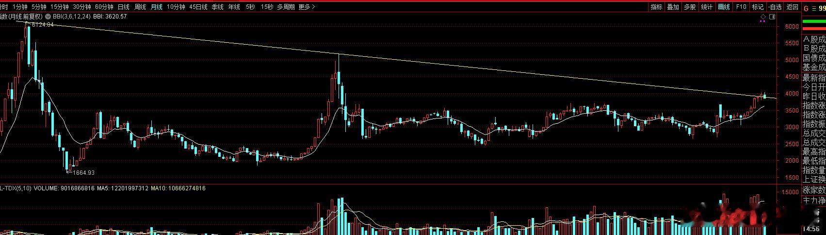 还一个比较讨厌的是,又跌回6124与5178点连线支撑了,这要收复不了3900点,那冲个4000点就成诱多假突破了。后面以后又回到大箱体震荡的格局里了。