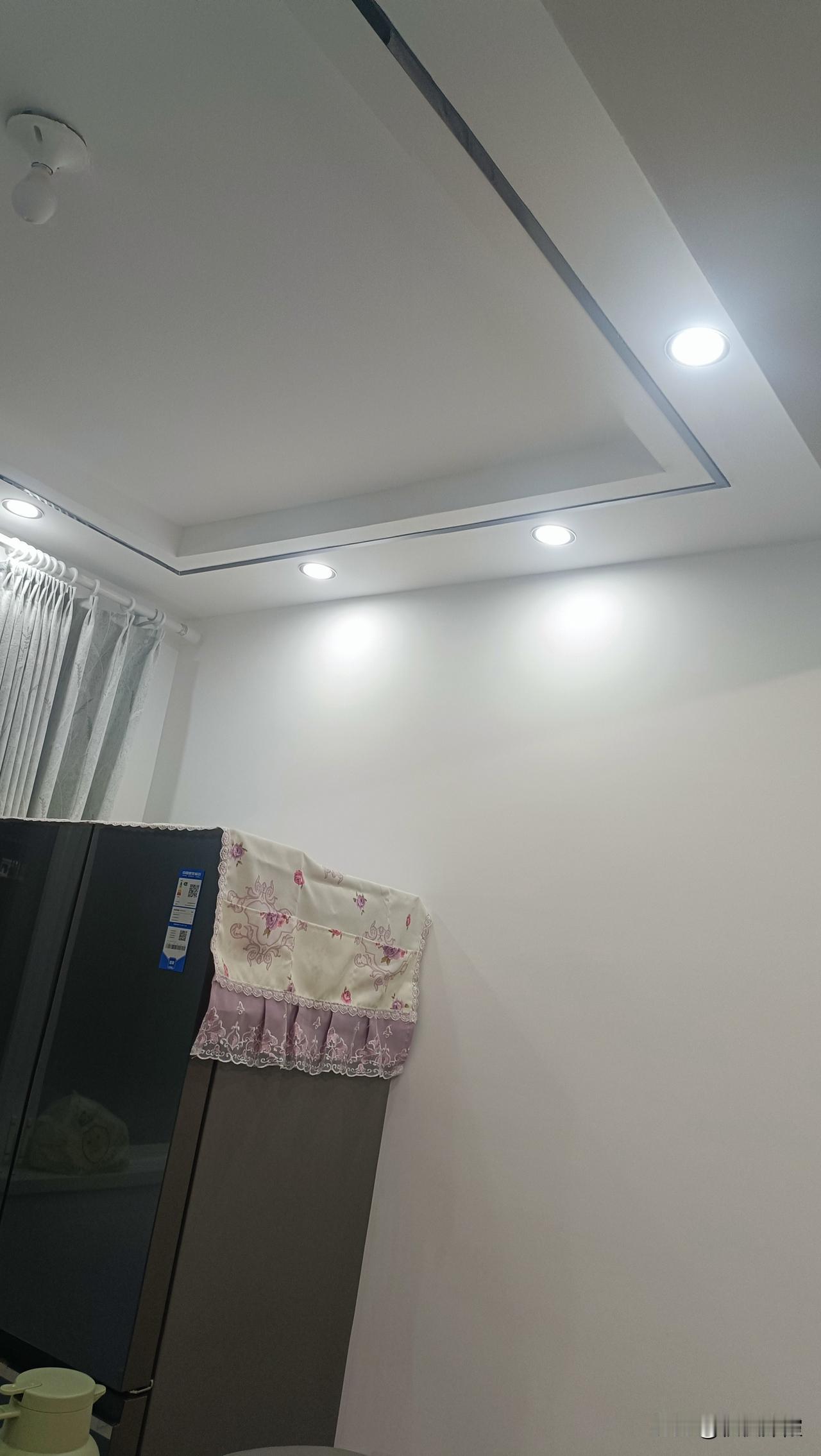 这个两天最大的收获就是自己能安灯了。而且灯都是安装后完统统都亮,没有一次返工。 我俩拿着所有的设备,包括电钻、电锤、爬梯,以及钳子,改锥、胶布等等,更重要的是买灯的钱钱,前来楼房安灯。 说干就干呐!22个猫眼灯,三个卧室灯,还有客厅跟餐厅灯,控制灯的插座等等,干了整整一天多。 就说安灯吧,这么多年还是初次干这活儿。这本应该是电工干的活,我俩也毫不犹豫地自己干了起来。干了才知道登高仰头操作并不轻松,跟换个灯泡、换个灯带灯芯截然不同的感受。 定位问题,是安装工作中的难点,关系到灯的位置是否在房间中央。圆灯还算好安装一点,只要在中间位置就好了。而长方形的灯定位最不容易。客厅灯110*70厘米,每个边都得跟墙平行,而且还得在客厅正中央。 于是,我俩就拿南北方向中间的筒灯为纵向中心线,东西两筒灯中心为横向中心线,交叉点为灯的最中心,然后确定灯孔位置。这个过程中学着木工用一只眼吊线,有意思。 整个三室两厅的开关、插座、灯,都是自己安装的。我俩分工合作,除了吃饭,一直没有停歇。说实话不累是假的。自己安虽然累点费事点,但是省下来的安装费可以抵小电钻小电锤的购置费。一顿操作下来,等于没花工钱,而且还拥有了可长期使用的工具。 更大的收获就是自己也能干电工活了。反正安上的灯都亮。[大笑][大笑][大笑]