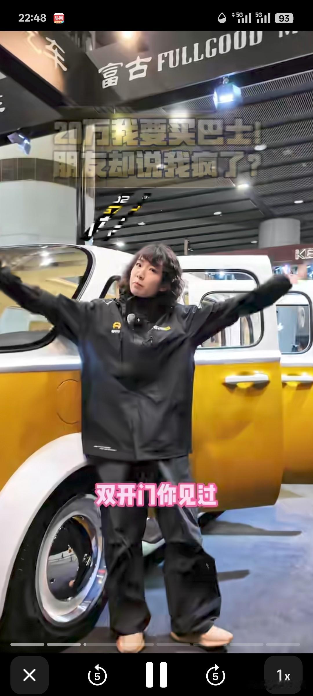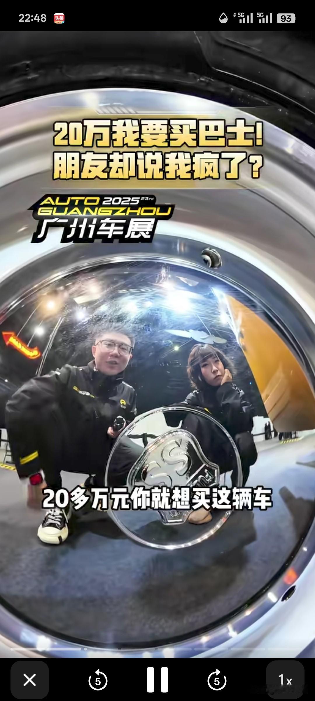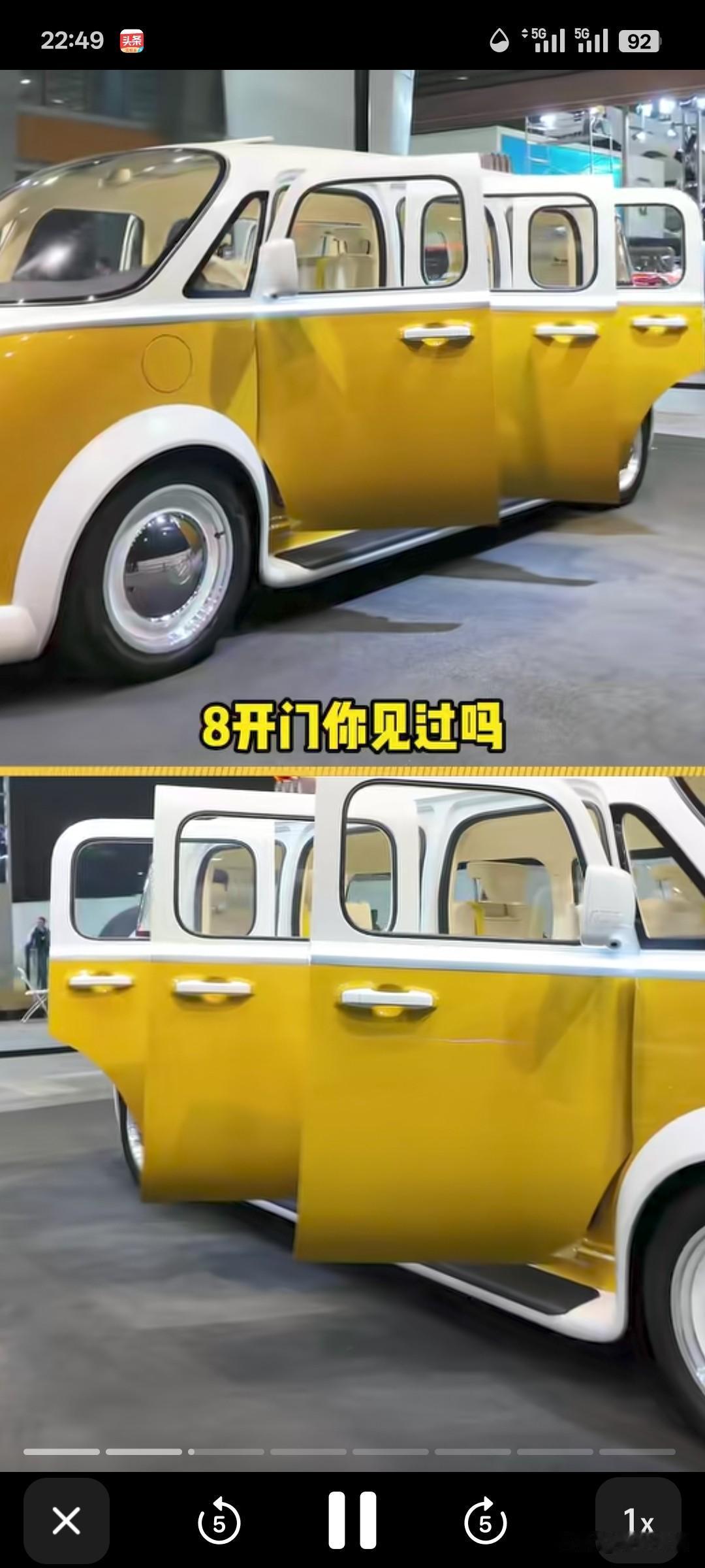 广州国际车展上的这辆车, 还真是让人眼前一亮, 黄白颜色搭配很气亮眼, 这就是妥妥的巴士, 只要20万就可以开回家, 听到两人对她的讲解, 还真是让人眼前一亮, 这车居然是八开门, 车后还送你一个轮胎, 车内空间也是非常大, 这样的车非常四个家庭庞大的人群, 开着这车一起去郊外旅行, 大家觉得这车怎么样?