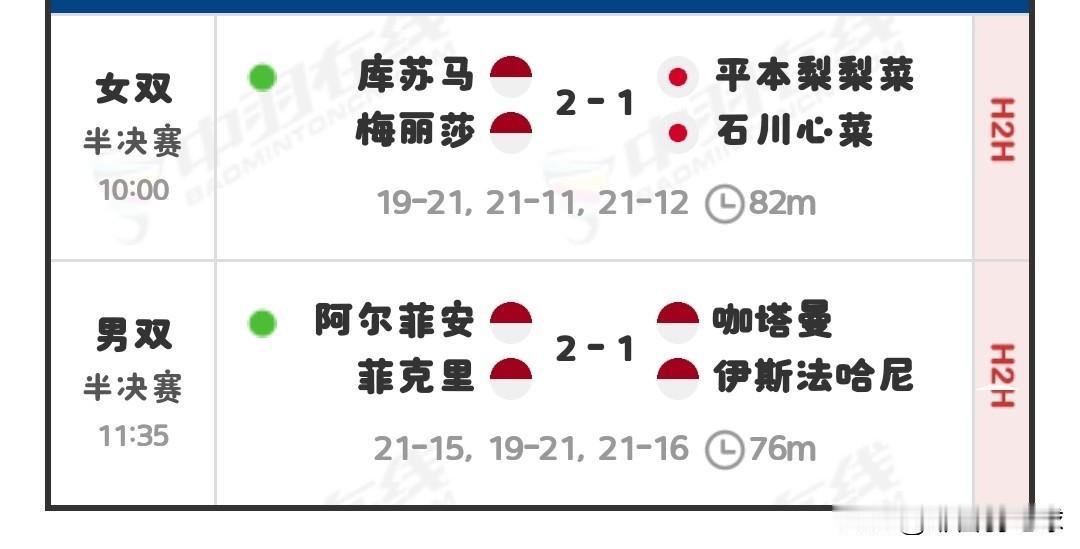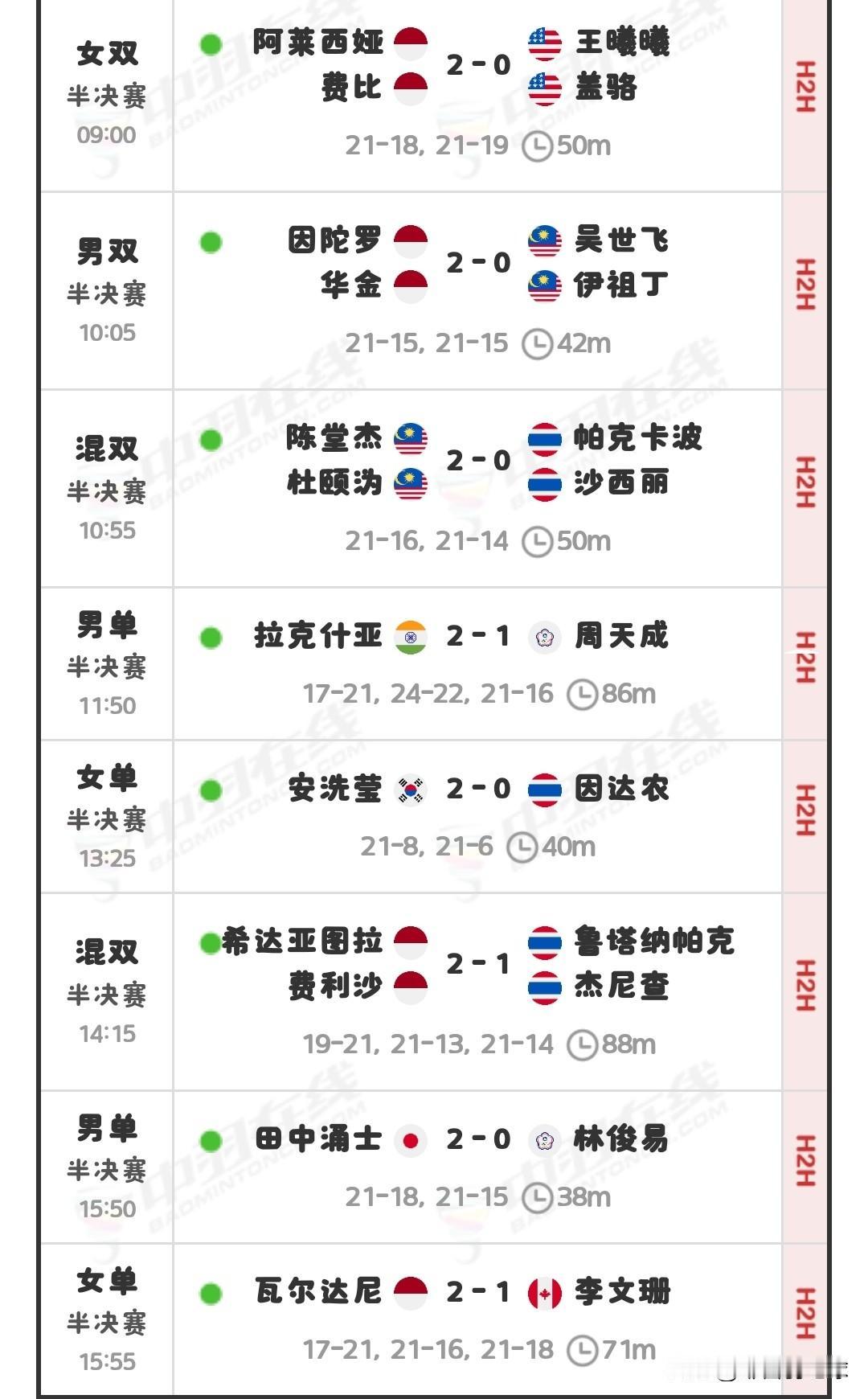 11月23日澳大利亚羽毛球公开赛决赛对阵安排 今日,半决赛已全部收官。周天成历经三局苦战,被拉克什亚逆转淘汰;林俊易连丢两局,不敌田中涌士。至此,中国台北选手全军覆没,无人晋级决赛。 明日决赛将于北京时间10:00打响,对阵分别为拉克什亚对阵田中涌士,安洗莹对战瓦尔达尼。以下是明日决赛的详细对阵安排以及今日半决赛的详细战报: 羽毛球赛事 羽毛球 羽毛球爱好者 羽毛球比赛 羽毛球赛程 羽毛球公开赛 周天成 安洗莹