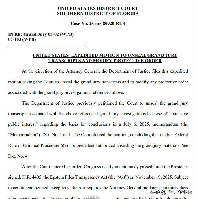 突发新闻:川普总统和司法部长帕姆·邦迪刚刚要求佛罗里达州联邦法院公布目前被封存的爱泼斯坦笔录。 这份文件是在川普总统签署了《爱泼斯坦档案透明法案》仅仅两天后提交的。美国司法部现在宣称,新的透明法案凌驾于允许这些文件继续封存的旧法之上。 左翼阵营将遭遇重大反噬。