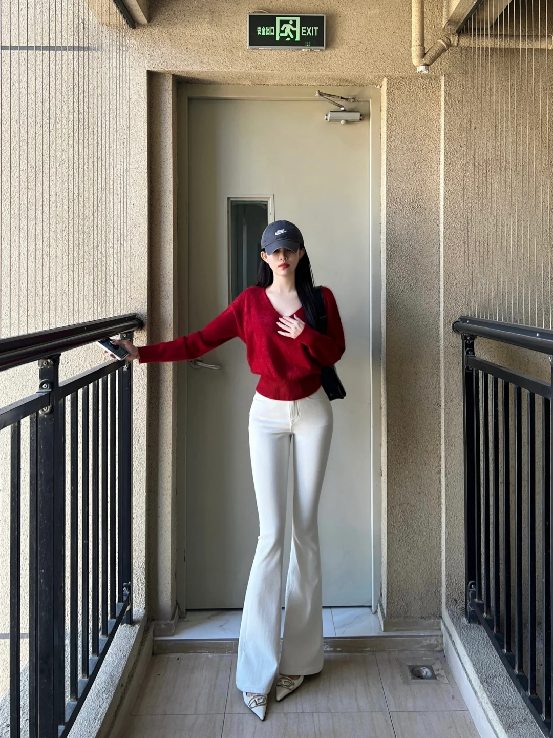 新年穿搭 红色毛衣 白裤子 秋冬内搭 早春穿搭