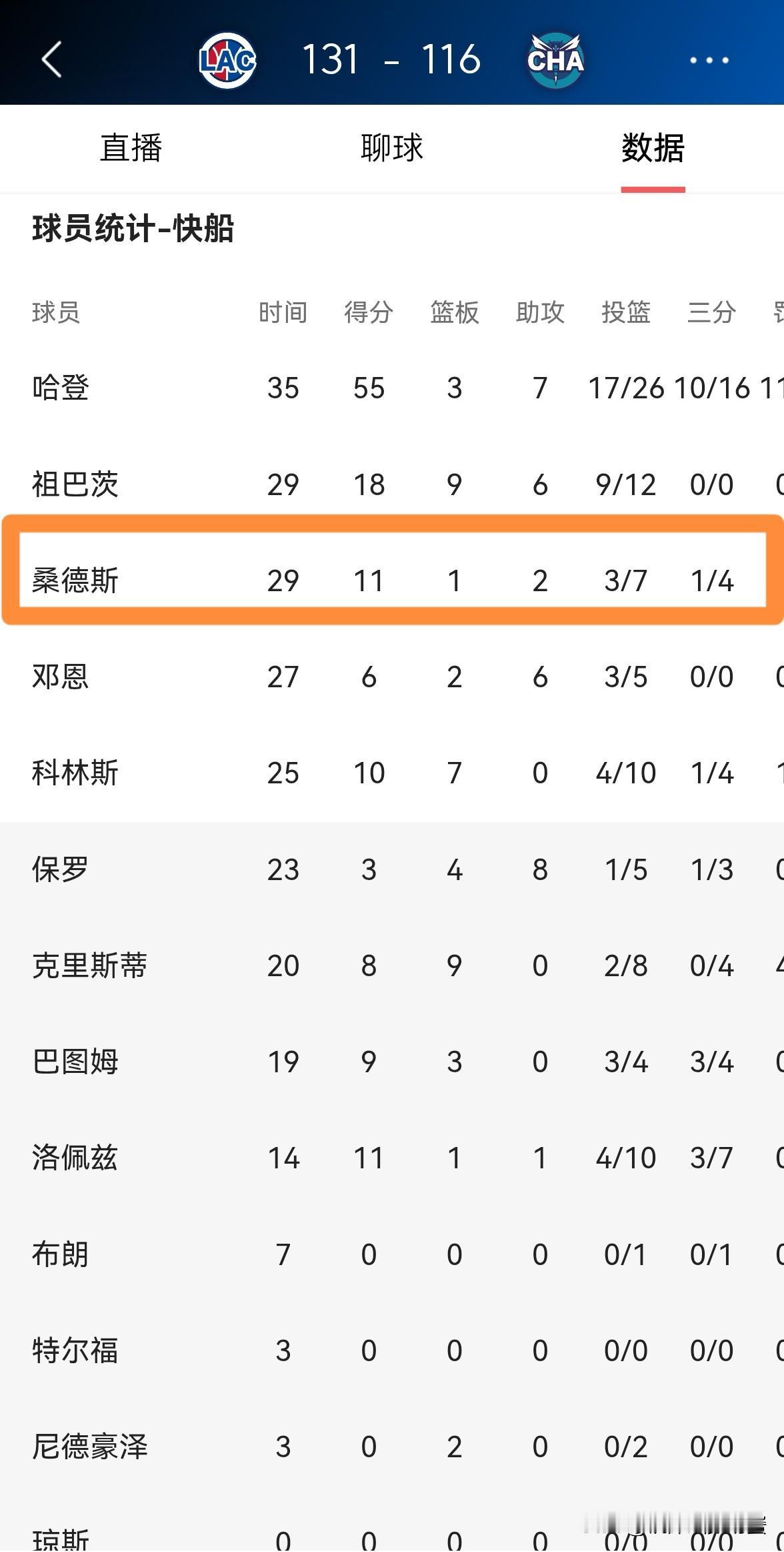 谁能拯救一下快船小将桑德斯的三分球?在今天快船客场以131:116击败黄蜂的比赛中,桑德斯首发出战29分钟,投篮7中3,其中三分球4中1、罚球4中4得到11分1篮板2助攻1抢断,他的场上正负值为+16。虽然桑德斯在攻防两端的表现都可圈可点,但是他的三分球命中率真是太低了,如果他能够在以后的比赛中提高自己的三分球命中率,那么他在球队的地位将会更加稳固。