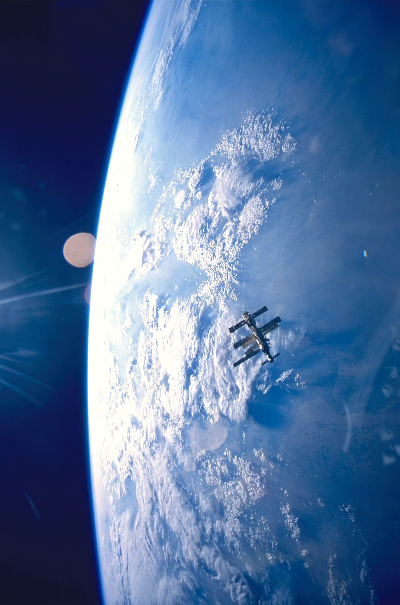 1995年,从发现号航天飞机上拍摄的和平号轨道空间站照片