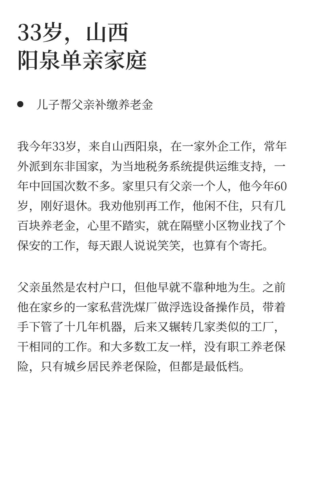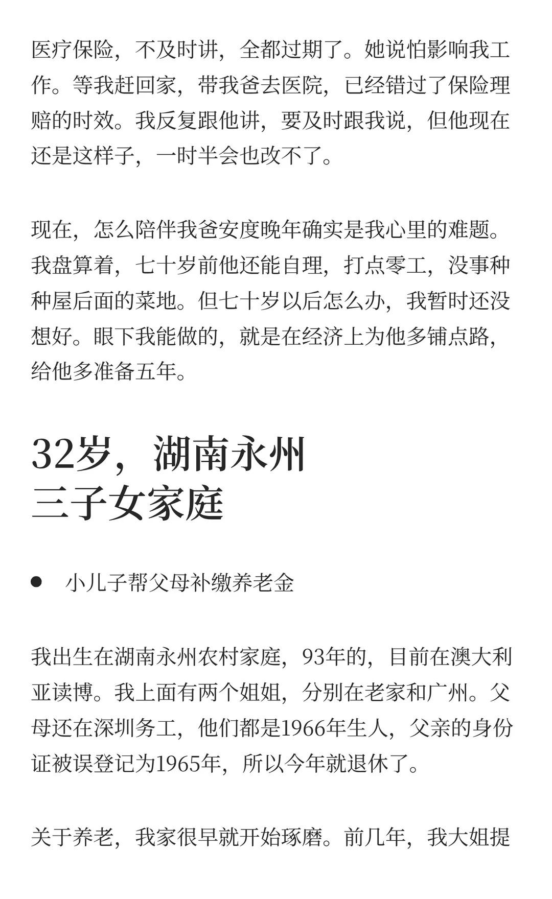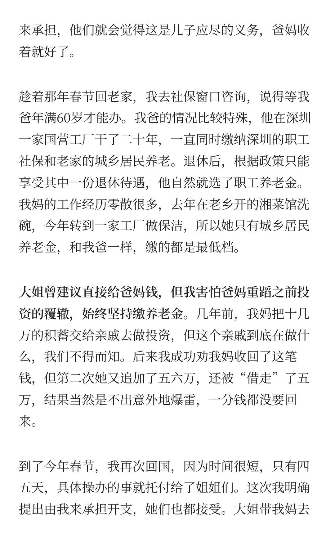 给农村父母补缴社保的年轻人 近年来,城乡居民养老保险参保人数不断减少,但农村60岁及以上人口占比已达22%,城乡居民基础养老金的最低标准仅有143元。面对这个困境,越来越多的年轻人选择主动接过担子,给操劳半生的长辈补缴养老金,提供一份每月到账的体面与安心。我们采访了三位子女,以下是他们的讲述。 实习记者|余雯彤编辑|王海燕 城乡居民养老 养老 社保 退休金 农村 农民 年轻人 父母