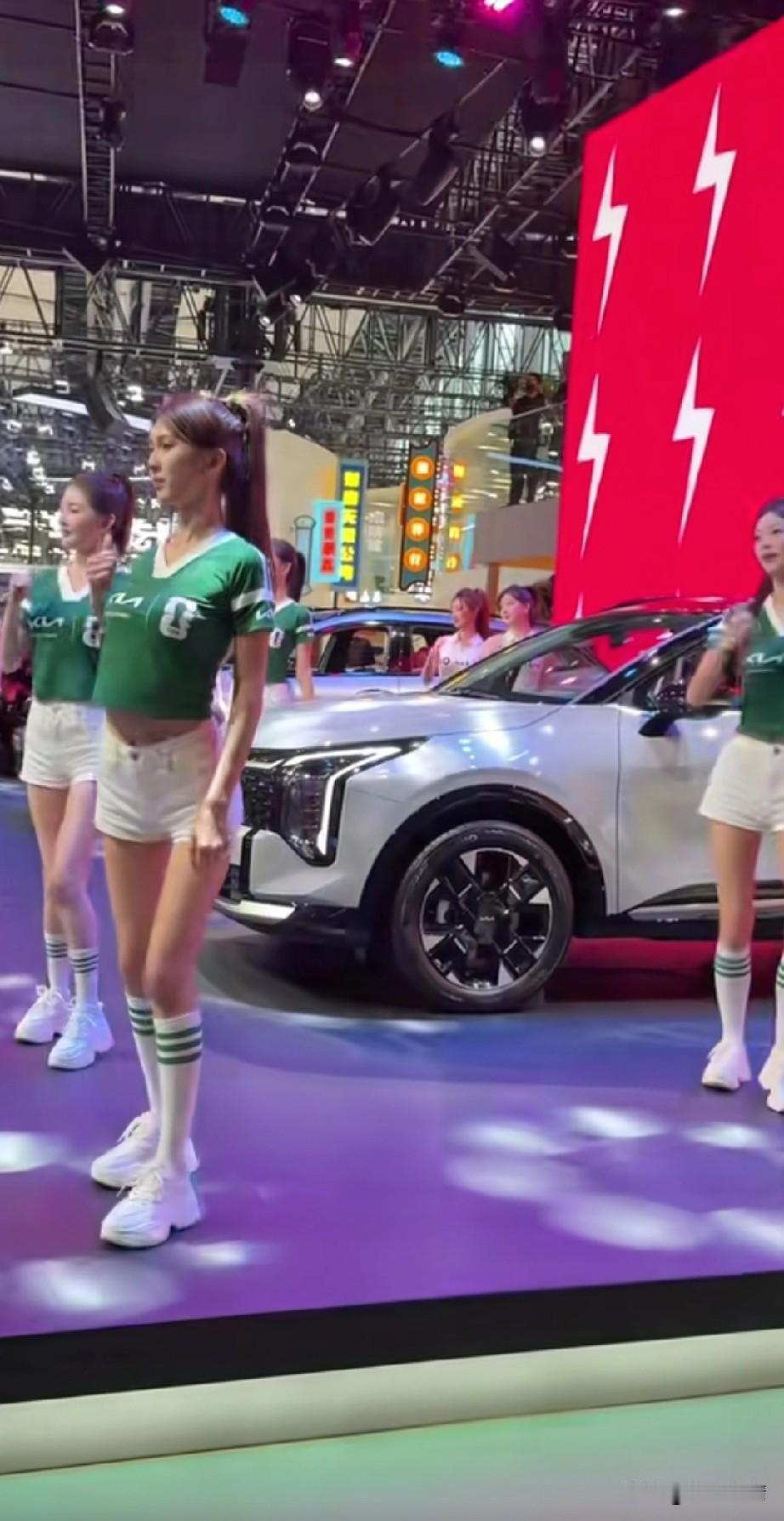 起亚车展还真是会整活, 人家车企都是找几个模特, 往车旁边一战, 吸引那些拍车模的人, 起亚不走寻常路, 直接请了一帮拉拉队, 看着这么多拉拉队跳舞, 现场很是热闹, 人群直接将它的展台围了起来, 不光有男观众, 还有好多女观众, 毕竟这些都是表演完就走了, 一锤子买卖, 拉拉队也是吃青春饭的, 不管车子好不好, 先把目光吸引来, 现在车企都是这么营销的, 就看起亚这次车型给不给力了!