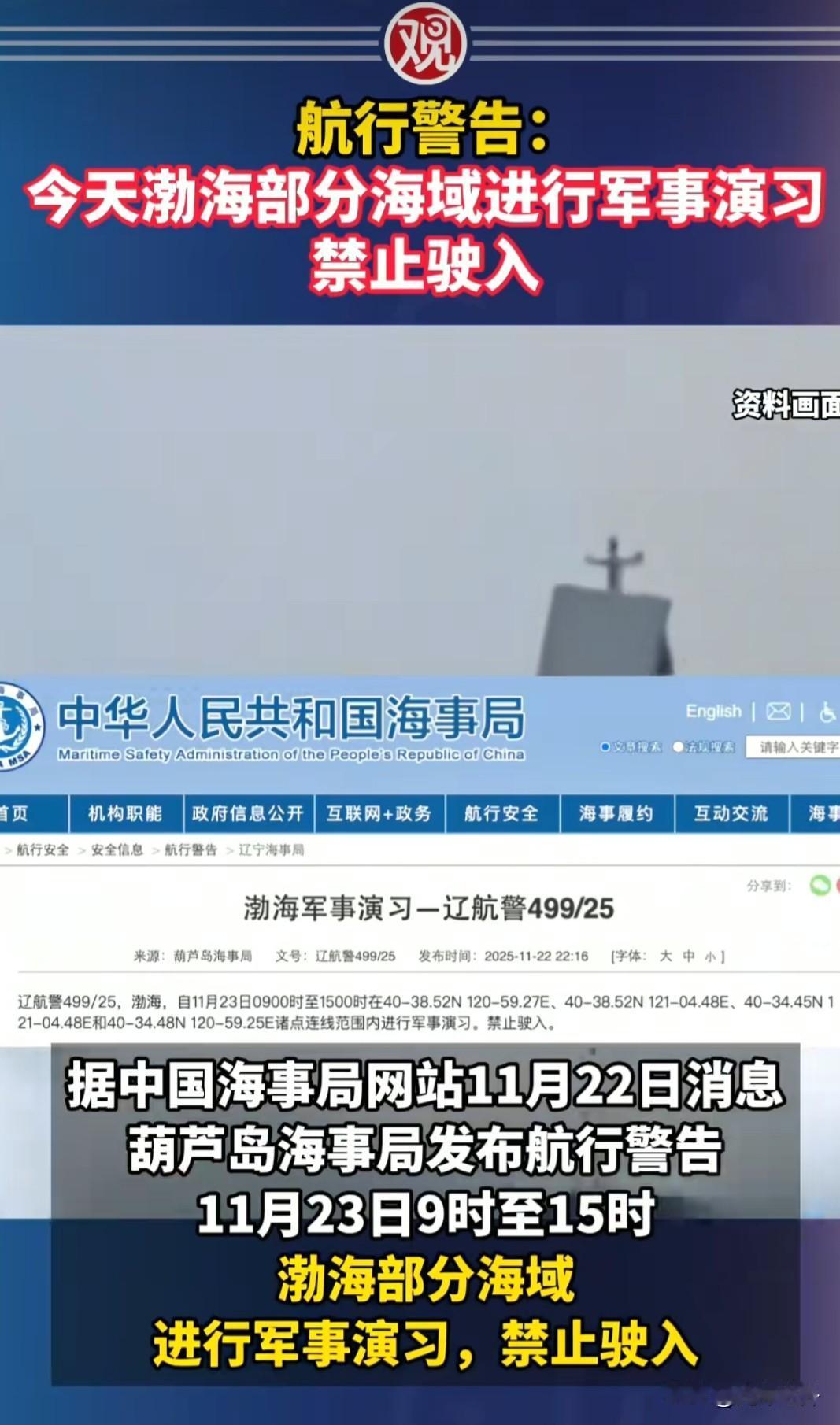 航行警告!今天开始! 持续两周! 这里要执行军事任务!
