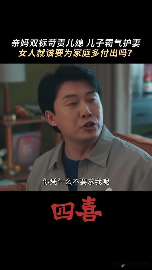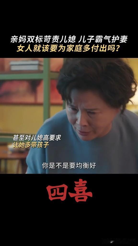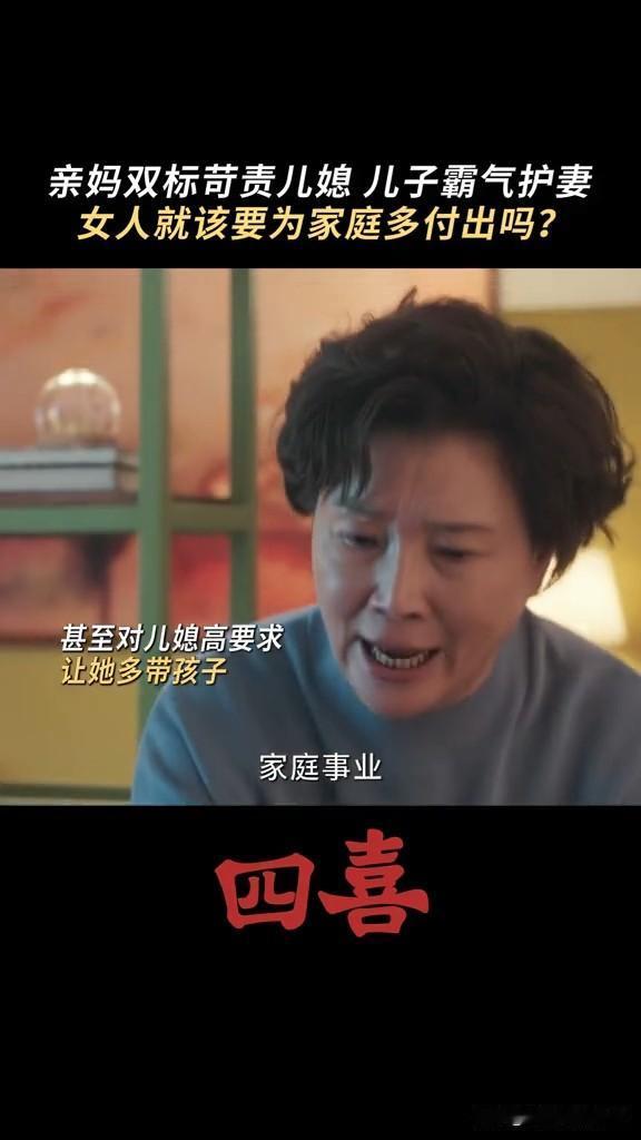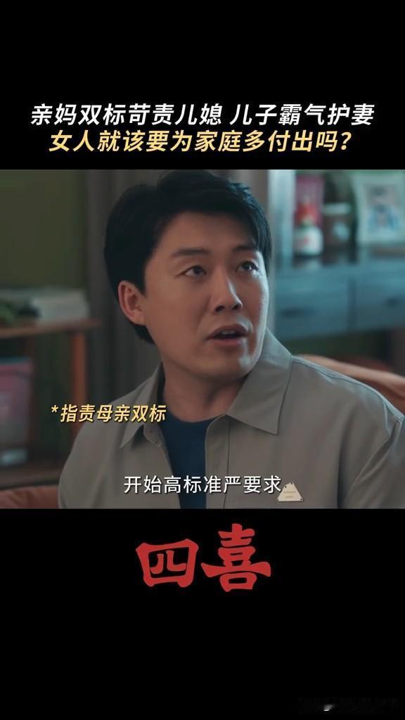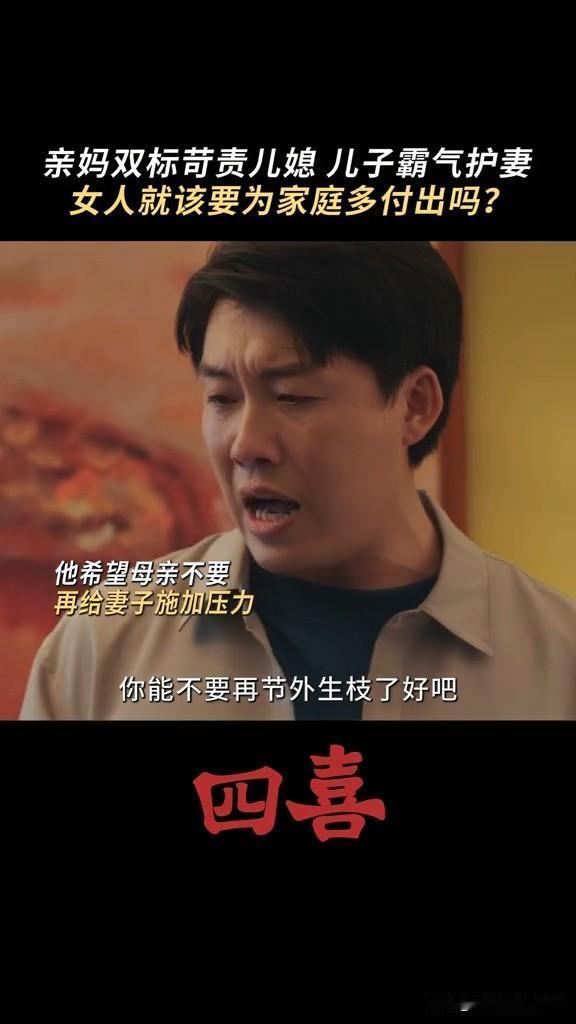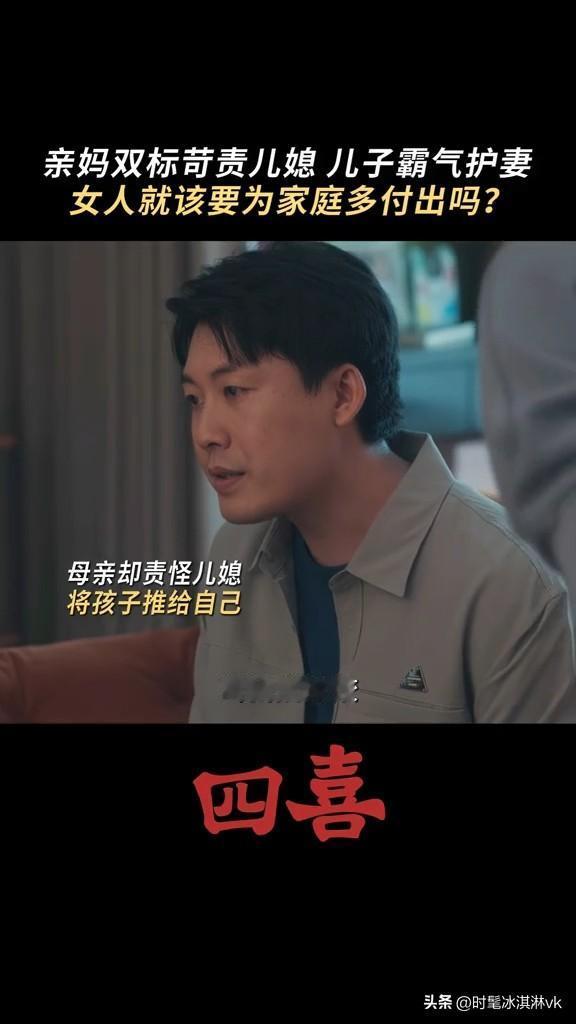 《四喜》婆婆要求知夏查肚子里的是男孩女孩,结果被自己亲儿子怼 这个婆婆重男轻女,知夏怀孕,非要她去查男女,男孩就打算买学区房,女孩就算了 结果张浩怼他妈妈,你当妈妈的时候没少让奶奶带我,现在当奶奶了,高标准严要求要求知夏平衡事业与家庭,你怎么不要求我呀! 张浩虽然不求上进,但是他还是爱知夏的