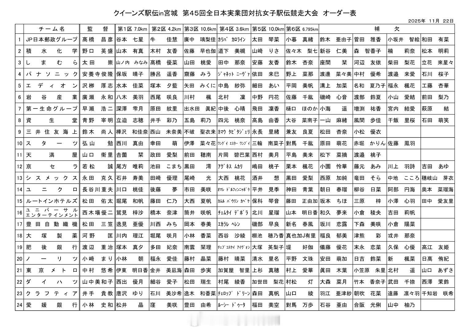 2025第45会全日本实业团女子驿传。第三区将是广中璃梨佳、佐藤早也伽、五岛莉乃、不破圣衣来、前田穗南、小林香菜、松田瑞生大混战。第45回全日本実業団対抗女子駅伝競走大会