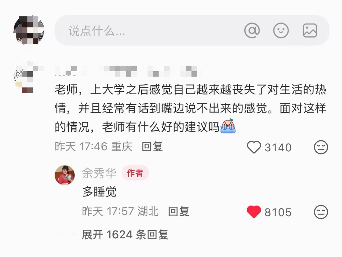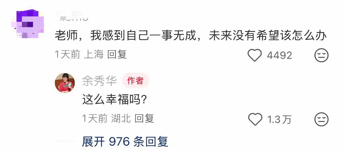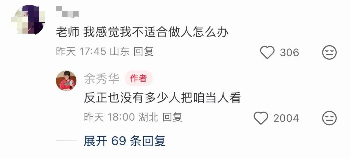 在余秀华的回复里缓解焦哈哈哈哈哈哈哈