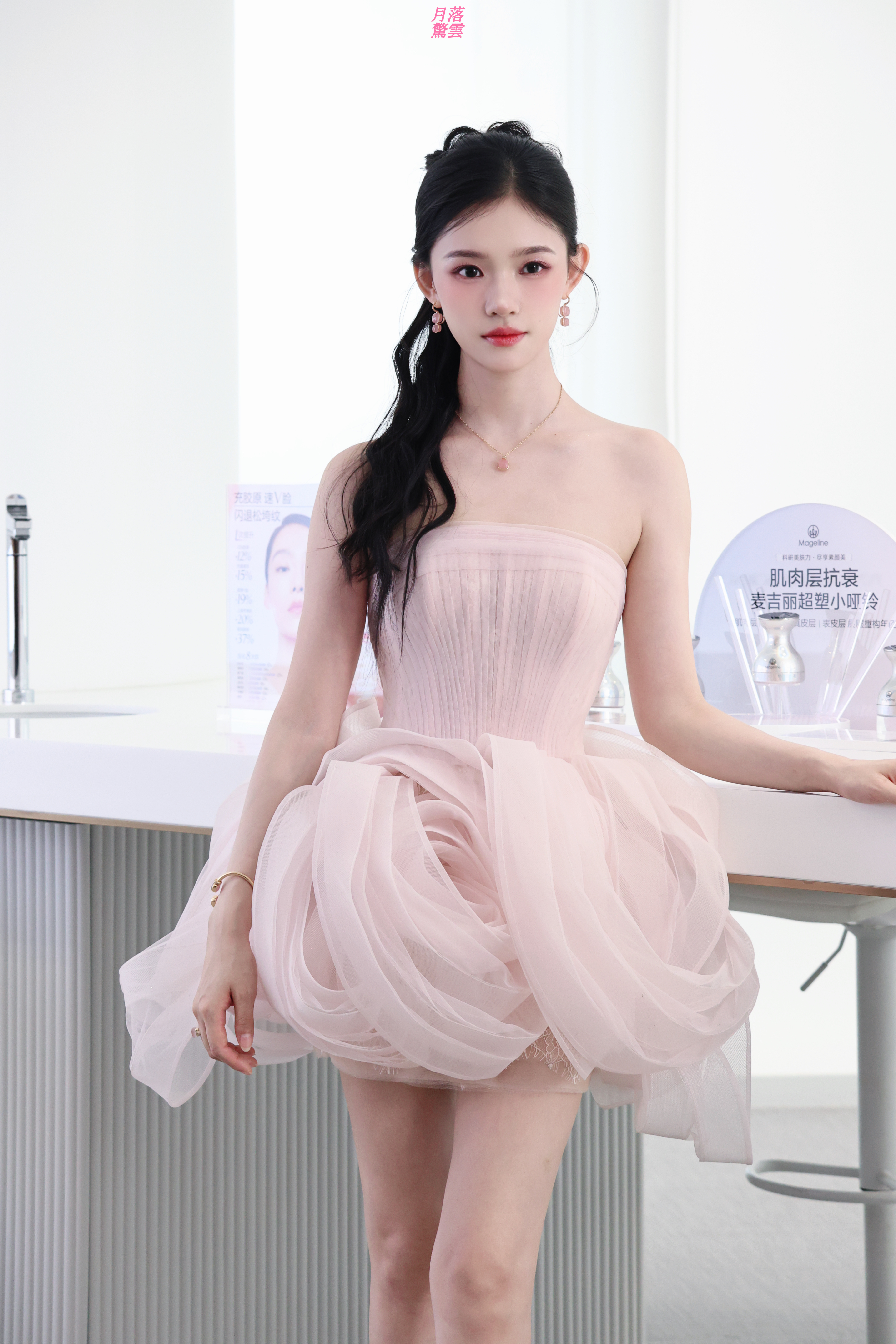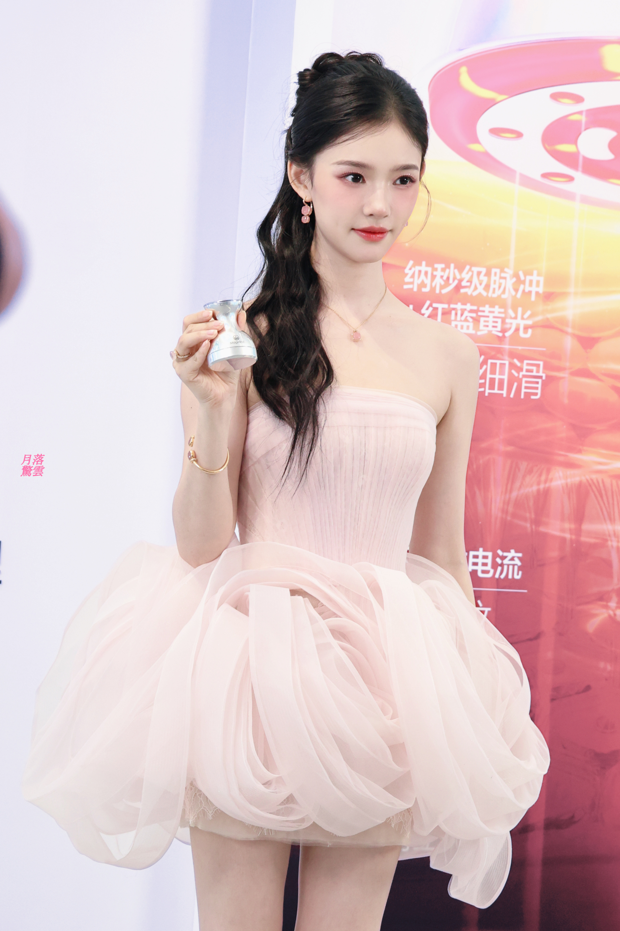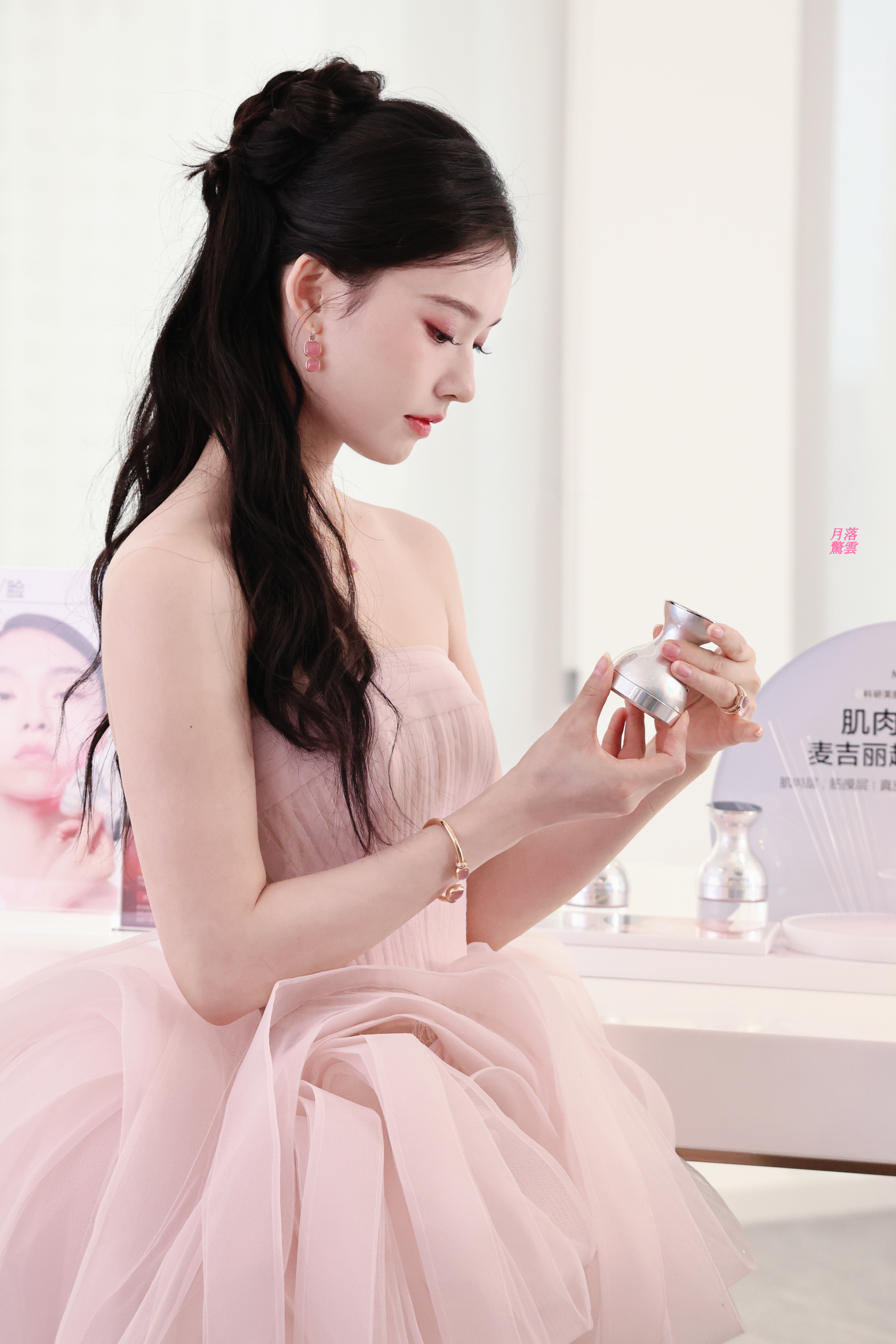 林允 粉色抹胸裙轻盈灵动,蓬松裙摆似春日花瓣,肌肤通透似玉,笑容清甜温柔,每一帧都是心动的模样。