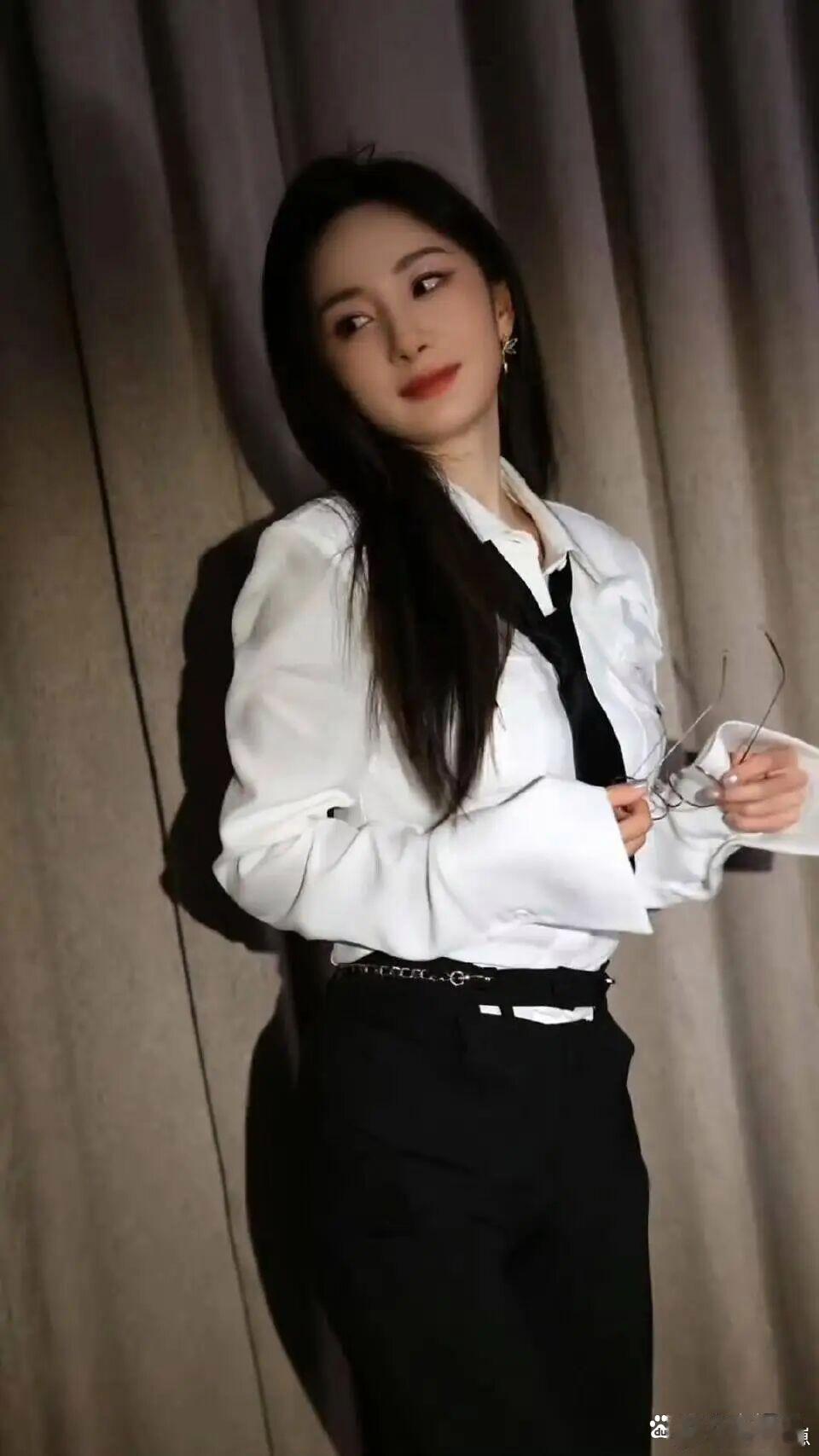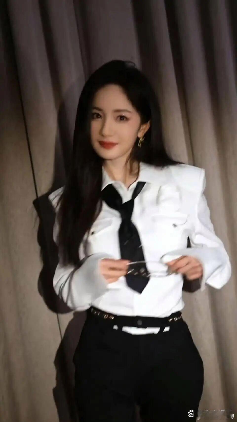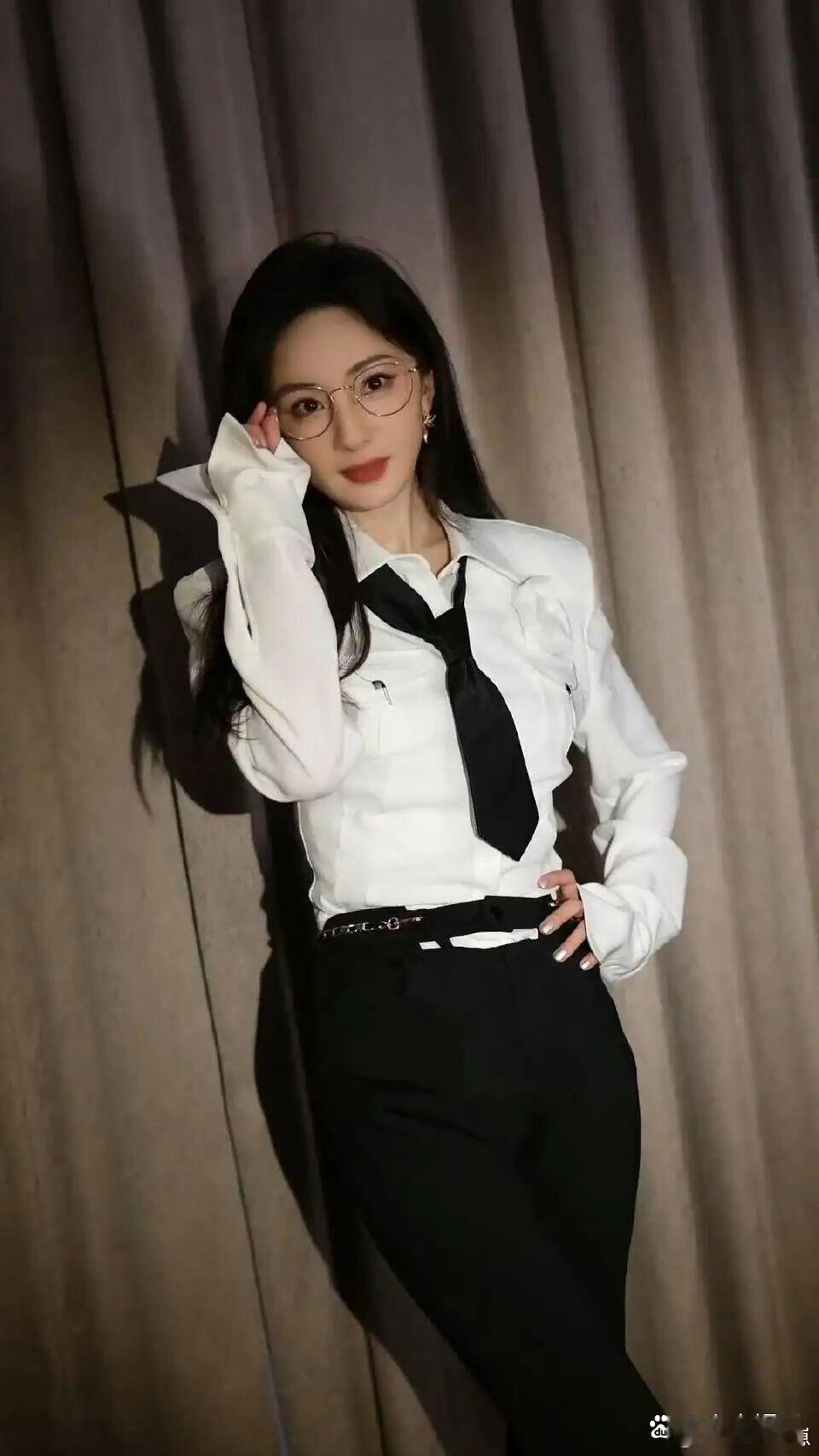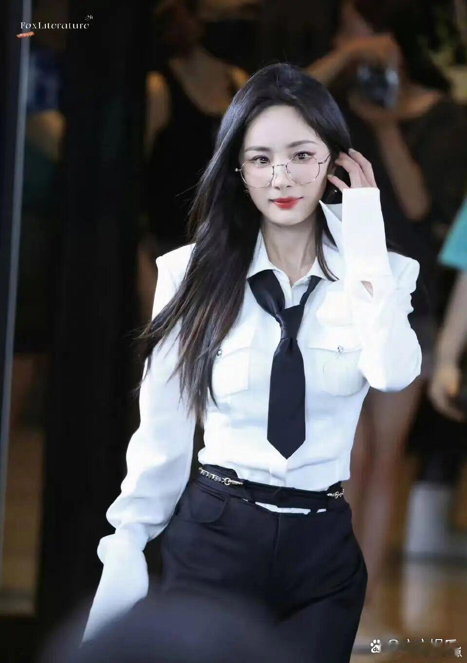杨幂黑长直搭白衬金丝眼镜,气场拉满,利落又亮眼