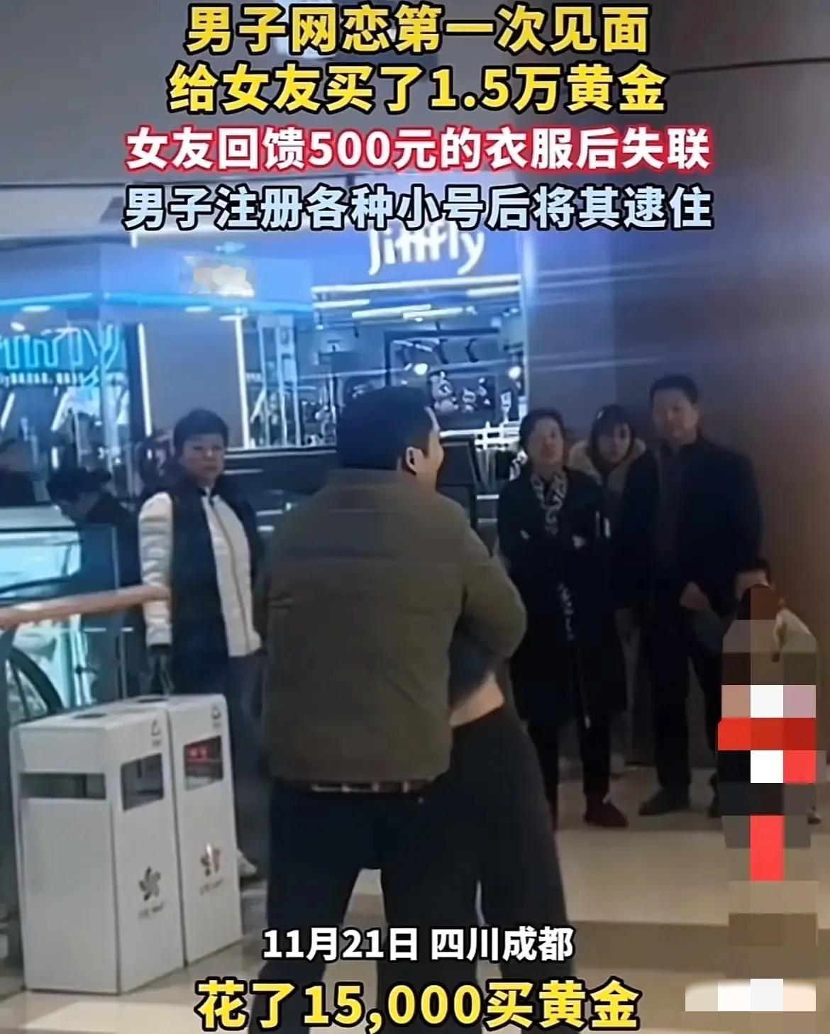 网恋就一定是钱花没理由? 前几天四川成都发生一起男子网恋女友见面后花1.5万买黄金手表,女方只送了500元衣服后就把男子拉黑了。 男子气愤之下报警了,民警和网友听了男子的辩解“没回礼”都惊呆了,不知道说什么好!相亲见面花1.5万买黄金手表,实在是过火了! 相亲见面,不说有礼有节,寒暄一下,送个礼物也是心意到了就行了吧?这网恋见面,就花1.5万买手表,这不是送钱吗?这见面礼都这么高了,那分手礼得多少钱呢? 不得不提醒大家,网恋中的人可真是“过度热情”啊!遇到这样的“网恋”见面,不被掠夺才怪呢!这女的心机可真重,居然把那黄金当赌注了? 见面买1.5万手表,想着把男子先套现了,再分手,两人都落得一无所有,还真以为聪明呢! 大数据已经揭露了女的行踪,她以为那黄金能换现金就能逃脱法网了吗?实在是太天真了! 麻烦看官老爷们右上角点击一下“关注”,既方便您进行讨论和分享,又能给您带来不一样的参与感,感谢您的支持!