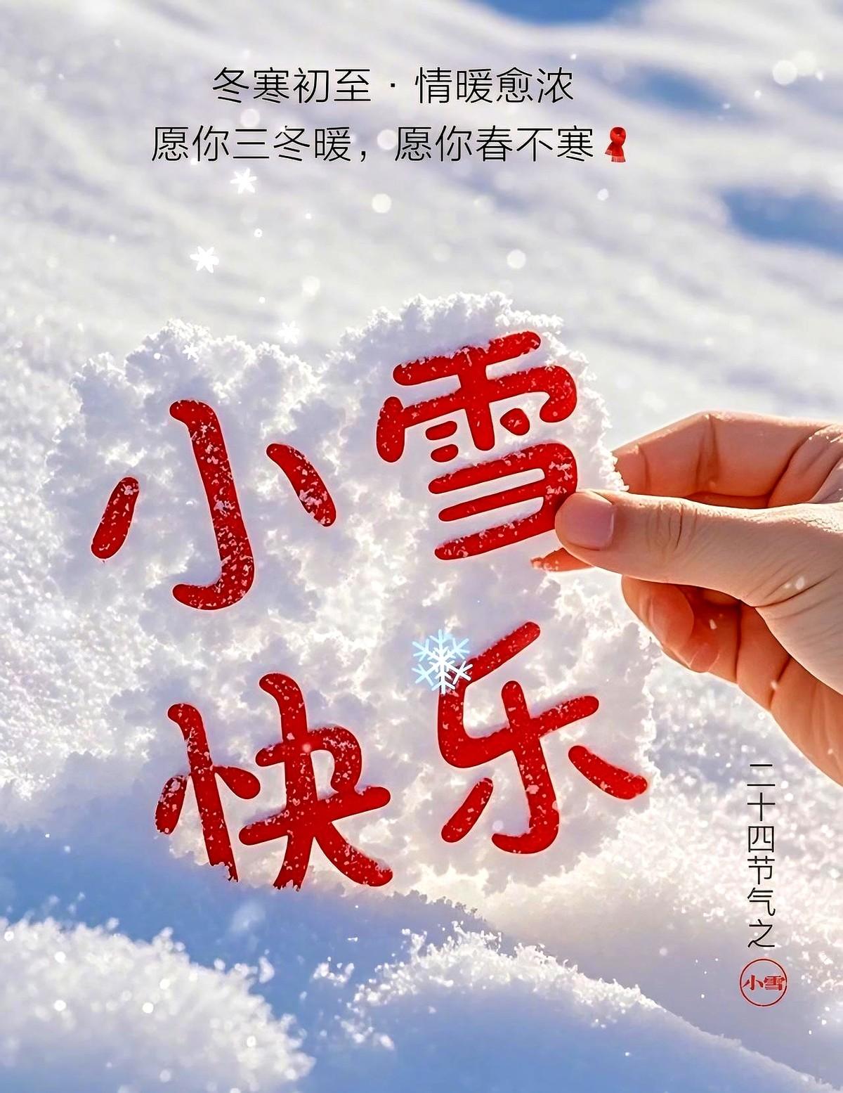 11月22日冬晨问安。 小雪至,送祝愿,喜乐安康常相伴! 一份牵挂,暖似阳,驱散冬日晓风寒。 祝愿你冬有暖阳,心有安暖,喜乐常伴! 早晨雾漫过冬野,清风捎来问候。 早安! 愿寒霜不扰暖意,岁月常伴安康,带着热爱奔赴今日,让生活溢满晴朗,让美好如期而至。 今日小雪,天地间初显寒冷,岁月却安宁温暖。 小雪节气,好事天天不断,心愿都能成真。 愿你心怀梦想,坚定向前迈进,与生活携手同行,慢慢变得更好! 周六愉快,幸福开心! 拜读佳作,妙笔生花,图文并茂,冬日问候很温暖,美赞支持!