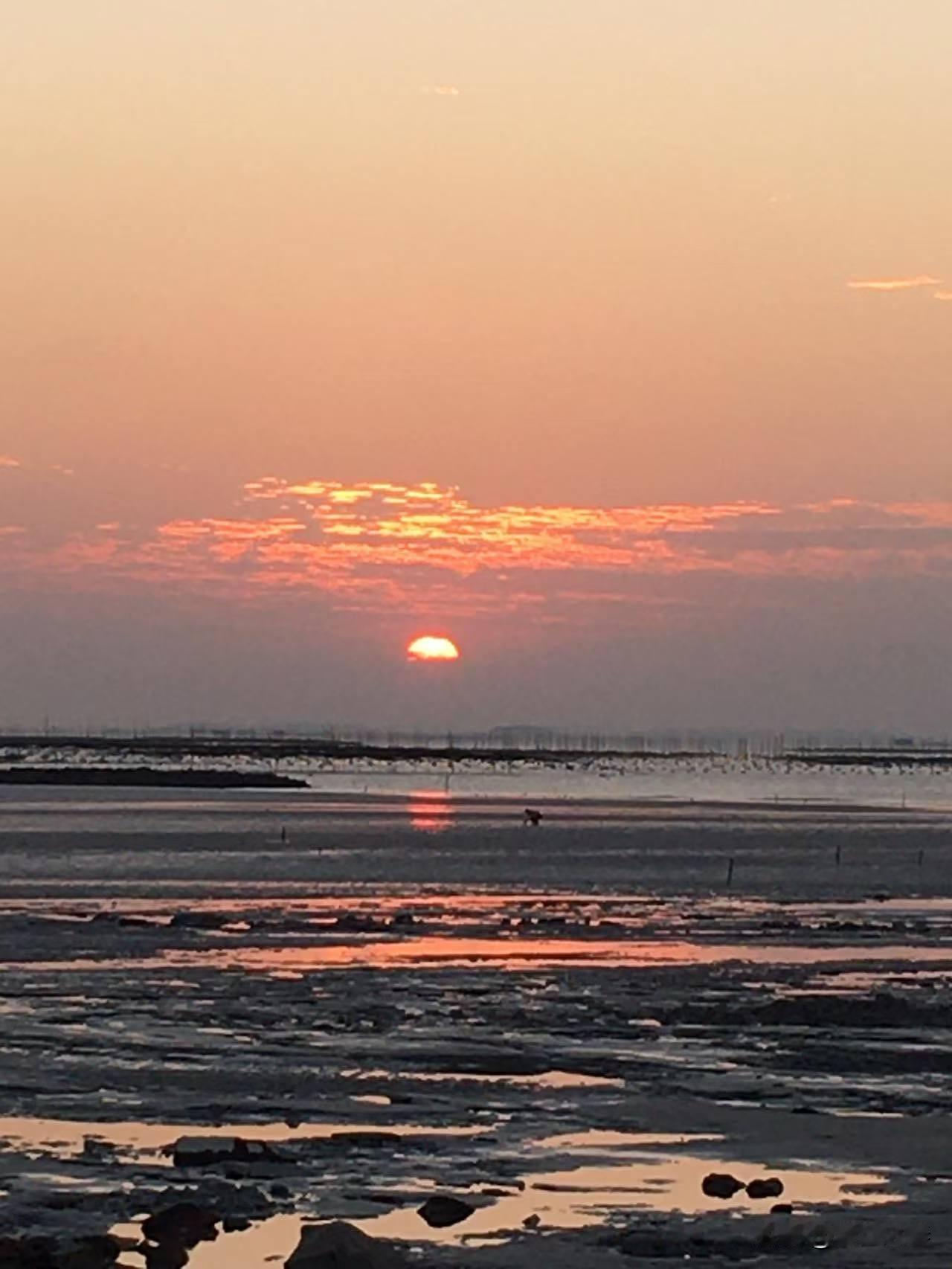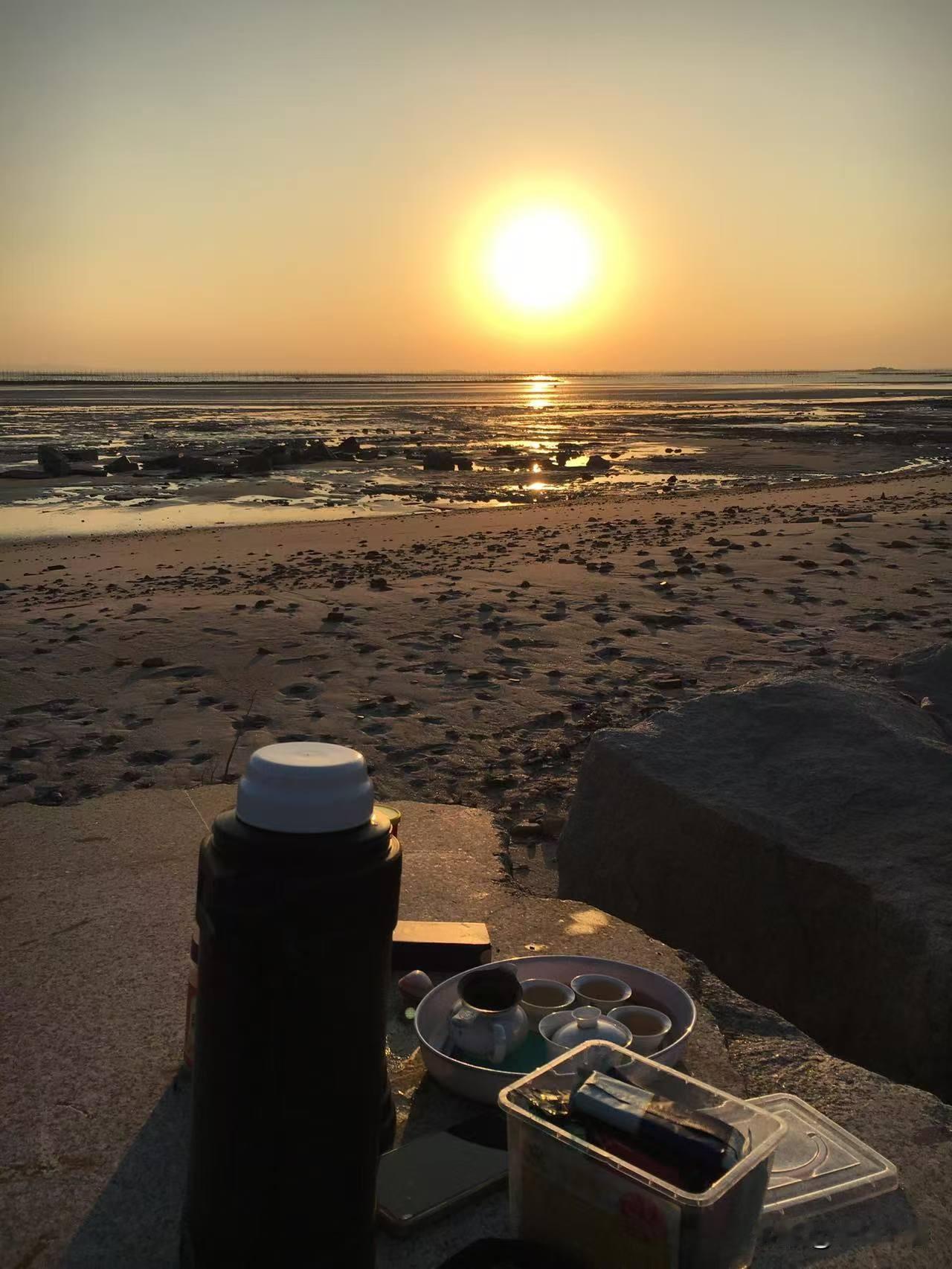 开启自驾游模式,远离城市喧嚣,今天晋江东石镇塔头孙海滩! 最近有点忙,难得偷得浮生半日闲! 喜欢一个人品茗,看山、看海、看花开! 享受孤独! 老样子,先沏上三杯红茶敬大海! 看!天边火红的云彩, 夕阳把大海染成了橙黄色, 飞鸟掠过晚霞, 太阳渐渐沉入海里, 与大海窃窃私语! 日落归山海,山海藏深意!