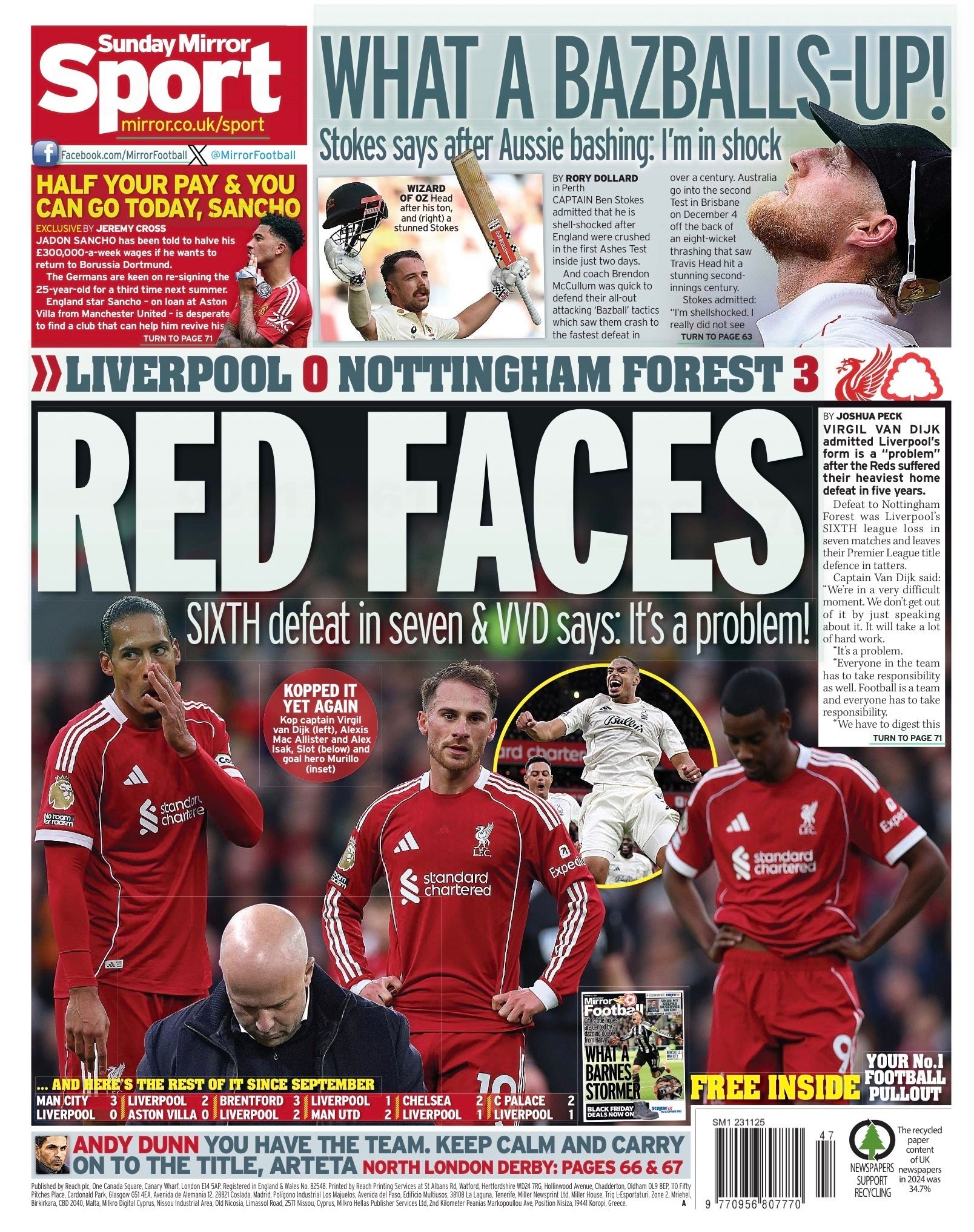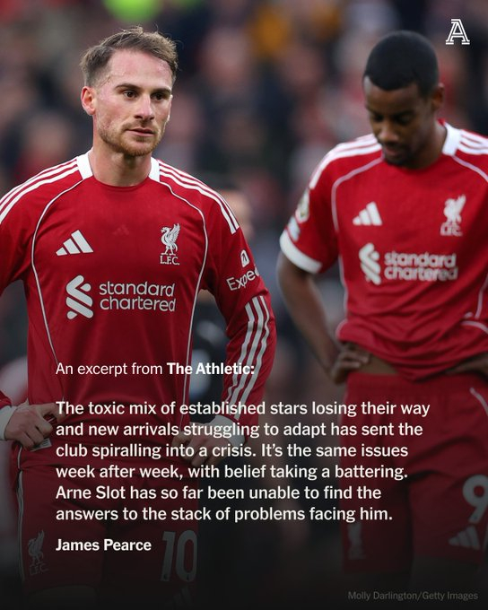 随队记者赛后交作业巴斯康比:伊萨克表现如此糟糕,以至于球队开始想念努涅斯。 ⚠️利物浦管理层中更为敏锐的成员,在周六后,或许会审视当前的处境,并得出一个不受欢迎的结论:“这将是我们最后一次在单个转会窗口投入如此巨额资金。”芬威体育集团(FSG)常被指责在球队建设上过于吝啬——尽管事实并非如此——但如今他们想必怀念那些“花小钱办大事”却遭非议的日子。他们的卫冕之路正朝着“高投入、低产出”的方向发展,而那些状态日益低迷的核心球员,仿佛陷入了一种诡异的轮换低迷循环。在这场斯洛特执教以来安菲尔德最惨痛的失利中,并没有出现像维尔茨那样因转会费高昂而引人困惑的球员。但没关系,伊萨克完美接过了“性价比争议”的接力棒。即便在这场惨败的废墟之上,想必仍有一些人在煞费苦心地分析宏观形势,并极力辩称伊萨克迟早会证明自己的身价,只是时间问题。如果这些“专家”能给我们其他人一个明确的时间表就好了。或许是2026年春天?还是说我们要相信,明年8月才是这位利物浦队史标王的“爆发日”?诚然,伊萨克在利物浦的“季前备战”9月1日才正式开始,但难道这协议里还包含“至少延续半个赛季”的条款?花1.25亿英镑,我们理应期待更多吧?圣诞节前能收获哪怕一个英超进球或一次助攻都是个开始。偶尔冲刺一下,或者尝试从拖沓的后卫脚下抢下皮球,这要求过分吗?关于伊萨克至今贡献寥寥的诸多疑问中,有一个始终挥之不去:当初他主动与纽卡陷入僵局时,身体状态究竟糟糕到了何种地步?当时有消息称他正在前东家皇家社会训练。巴斯克地区的这家俱乐部,到底是经营着一家怎样糟糕的健身机构?如果伊萨克的夏季“集训”只是偶尔慢跑,那他在本周末的复出之战中,倒是把这些“训练内容”执行得无可挑剔。68分钟的出场时间里,他没有一脚射正,没有赢得一次对抗或抢断,也没有创造任何绝佳机会,这一切都诉说着一个令人遗憾的事实。利物浦曾拥有一支极具拼搏精神的锋线,但伊萨克转会安菲尔德后,唯一的“高压逼抢”,似乎只是为了让他的俱乐部西装保持笔挺。被伊萨克取代的前锋达尔文·努涅斯,即便表现远比他出色,也曾饱受批评。努涅斯固然缺乏沉稳和细腻,但即便有诸多瑕疵,你也始终无法将目光从他身上移开。而周六的比赛中,若非看到伊萨克被换下的号码牌,你甚至可能意识不到他正在场上。并非只有伊萨克贡献寥寥。在球队的集体低迷下,伊萨克在利物浦球衣的映衬下,更像是克里斯蒂安·本特克,而非努涅斯,更不及利物浦近年9号球衣的标杆——菲尔米诺。同样的道理,弗洛里安·维尔茨也未能达到预期:身披7号球衣的他,本应成为彼得·比尔兹利式的人物,却更像是奈杰尔·克拉夫。上赛季让利物浦所向披靡的一切,如今都暂时消失了,球场的每个区域都出现了问题。伤病缺席和新援磨合固然可以解释部分原因,但不能成为借口——以往球队和教练总能在困境中找到解决办法,而本赛季,他们在落后时屡屡陷入恐慌,将岌岌可危的局面进一步推向绝境。关于“情况终将好转”的安慰之词还会继续。考虑到斯洛特麾下球员的实力,整体而言球队和俱乐部的表现最终大概率会有所提升,尽管新援们仍需证明自己配得上这身球衣的重量。但这并非当初的计划。利物浦本应在优势基础上稳步前行,而非节节败退,等待下赛季重新发起冲击。利物浦主席汤姆·沃纳在董事包厢目睹了0-3不敌森林的惨败,想必已将这份最新的“灾难报告”发给了FSG的同事们。要求球迷保持耐心、承诺低迷期不会持续的声音,或许还能再持续一周。但这无法改变一个严峻的现实:利物浦的管理层在注视着这些创纪录的引援时,心中的担忧必然与日俱增——他们掏心掏肺地投入重金,到头来却只摸到了一堆绒毛,而非金灿灿的金币。…………………………………………………………………………皮尔斯:安菲尔德已渐生躁动。一种失败主义的情绪笼罩着球场。从第 33 分钟穆里略抓住后防松懈的机会破门,帮助森林取得领先的那一刻起,你就能在球场上感受到这种情绪。利物浦没有奋起反击,反而溃不成军,温顺地接受了失败的命运。你也能在看台上感受到这一点 —— 比赛氛围本就异常沉闷,而在比赛末段吉布斯怀特将比分扩大为 3-0 后,球迷们更是成群结队地离场。现场并未出现针对斯洛特的公开抗议。上赛季英超冠军积攒了足够的声望,因此即便球队遭遇七轮联赛六败的惨淡战绩,也暂无更换主帅的强烈呼声。但安菲尔德内部普遍的躁动情绪,给斯洛特敲响了警钟:球迷的耐心并非无限。他必须尽快扭转这令人震惊的颓势,时间已经所剩无几。这是斯洛特执教的第 50 场联赛。值得一提的是,俱乐部历史上没有任何一位主教练能在达到这一里程碑时取得更多胜利(31 场)。但他必须尽快找到答案。14 个月前,森林给了他在英格兰足坛的首场失利,如今他们卷土重来,给了他最耻辱的一场败绩。利物浦如今真是一团糟。………………………………………………………………………………乔伊斯:足球本是一项简单的运动。至少,在面对如今的利物浦时是这样。他们的短板每周都在增多,令人愈发担忧 —— 定位球防守脆弱、进攻缺乏终结力、中场身体对抗不足 —— 但真正定义这支冠军之师的,是他们面对挫折时毫无还手之力的状