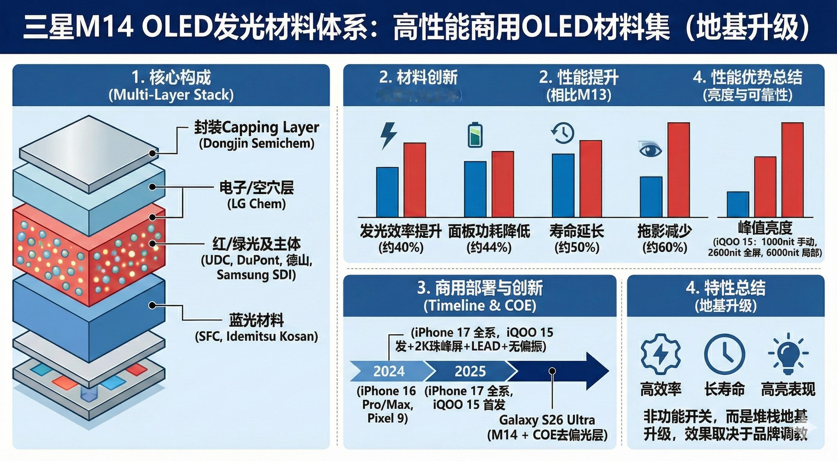 用nano banana pro 生成的三星M14发光材料的信息图。