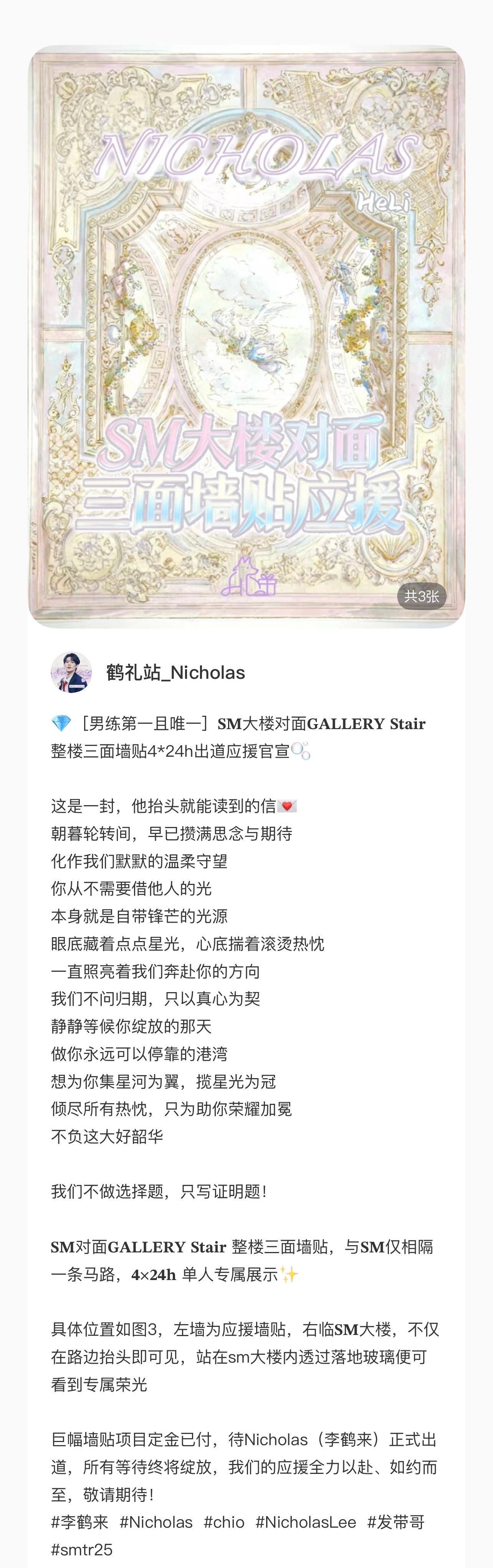 李鹤来粉丝直接将出道应援做到SM大楼对面,整楼三面巨大墙贴,抬头即可见,伟大