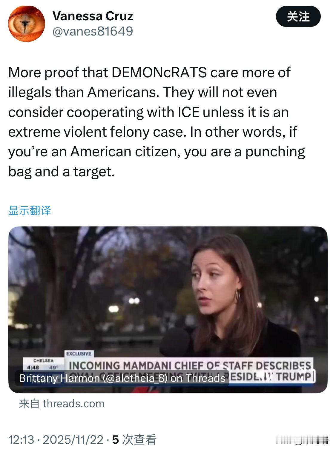 突发:纽约市候任市长佐兰·曼达尼的即将上任的办公室主任埃勒·比斯加特-丘奇(Elle Bisgaard-Church)公开表示: 纽约市只有在非法移民犯了“极端暴力重罪”之后,才会与联邦合作,协助逮捕并递解出境。 纽约州最常见的“极端暴力重罪”包括: ▪️一级谋杀 ▪️二级谋杀(含恶性杀人) ▪️一级绑架 ▪️纵火杀人( 致人死亡) ▪️一级强奸 ▪️针对儿童的犯罪 ▪️一级抢劫(持致命武器或造成严重伤害) ▪️一级入室抢劫(持致命武器或造成严重伤害) ▪️某些恐怖主义相关重罪(如使用大规模杀伤性武器等)