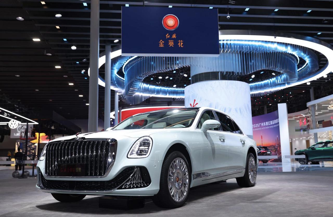 红旗金葵花品牌亮相广州车展,一起来看看有什么看点。 1、品牌全面焕新,品牌定位超豪华汽车产品线,以金色葵花为标识 2、国礼、国雅、国耀、国悦亮相,其中国礼定位顶级豪华旗舰轿车,国雅车型为国产首台超豪华行政轿车,国耀定位超豪华全尺寸SUV,国悦则是红旗豪华礼宾新旗舰车型 3、红旗金葵花国礼“丹霞”主题定制版全球首发亮相,以漆画为主要表现形式,在座舱内四门门饰板上呈现;与此同时,全新国礼也迎来产品力的再提升,增加了后排座椅腿托、无线充电、标配智能网联、冷热双模压缩机冷暖箱等配置 4、红旗金葵花国雅“宋韵风雅”主题定制版亮相,外饰采用“天青叠雪”的双色设计,内饰以天青与超白双色铺陈【来自懂车帝车友圈】