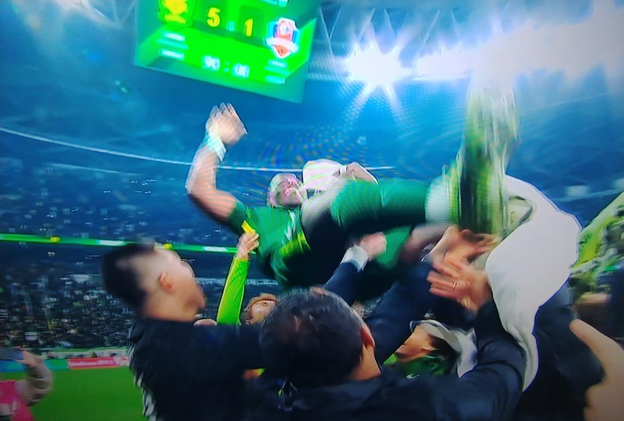 法比奥的金靴背后有三个人功不可没! 法比奥的大四喜确保本赛季独得中超最佳射手,收官之战北京国安全队只有一个愿望,法比奥能够多进球!张稀哲的出场直接助攻法比奥得分,可以说张稀哲是法比奥大四喜的第一功臣。另外一个要属他的锋线搭档张玉宁,上半场可以看得出来,张玉宁拿球后不是想怎么进球,而是马上抬头寻找法比奥,虽然没有直接助攻,但是有这样的搭档法比奥应该感到很幸福。最后一位应该是梅州客家守门员郭全博,这位原北京国安头号门将,用一个失误成就了法比奥的金靴。