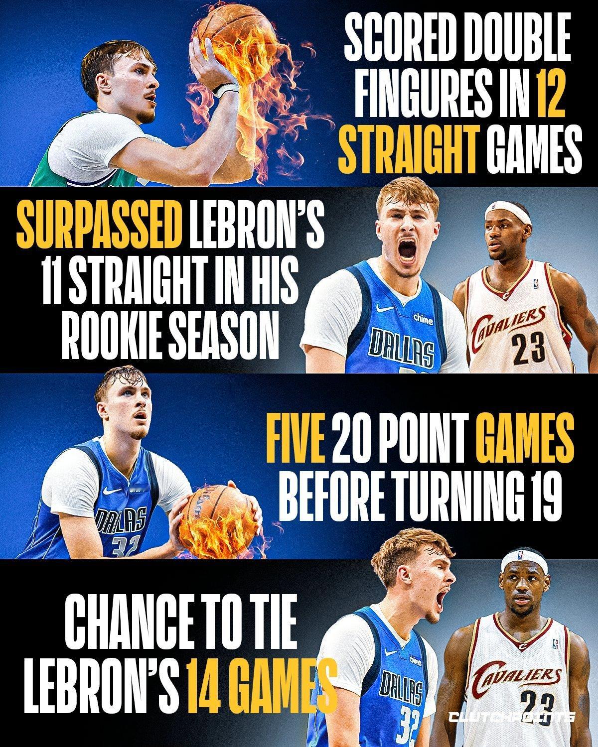 库珀·弗拉格正在创造历史的路上努力着!就像之前的勒布朗一样,弗拉格凭借其技术、沉着冷静和不懈的努力,正在吸引着一代人!勒布朗为少年天才树立了榜样,如今弗拉格正在书写属于自己的篇章。现在已经连续 12 场比赛得分上双,这是 18 岁球员的最长连续得分上双纪录,超过了勒布朗两次连续 11 场得分上双的纪录。他在 19 场比赛中已经拿下 5 次 20 分,超过了科比的 4 次,现在只差追赶勒布朗的 14 次,在 12 月 21 日之前再拿下 9 次,他就能追平这一纪录。弗拉格可以做到吗?