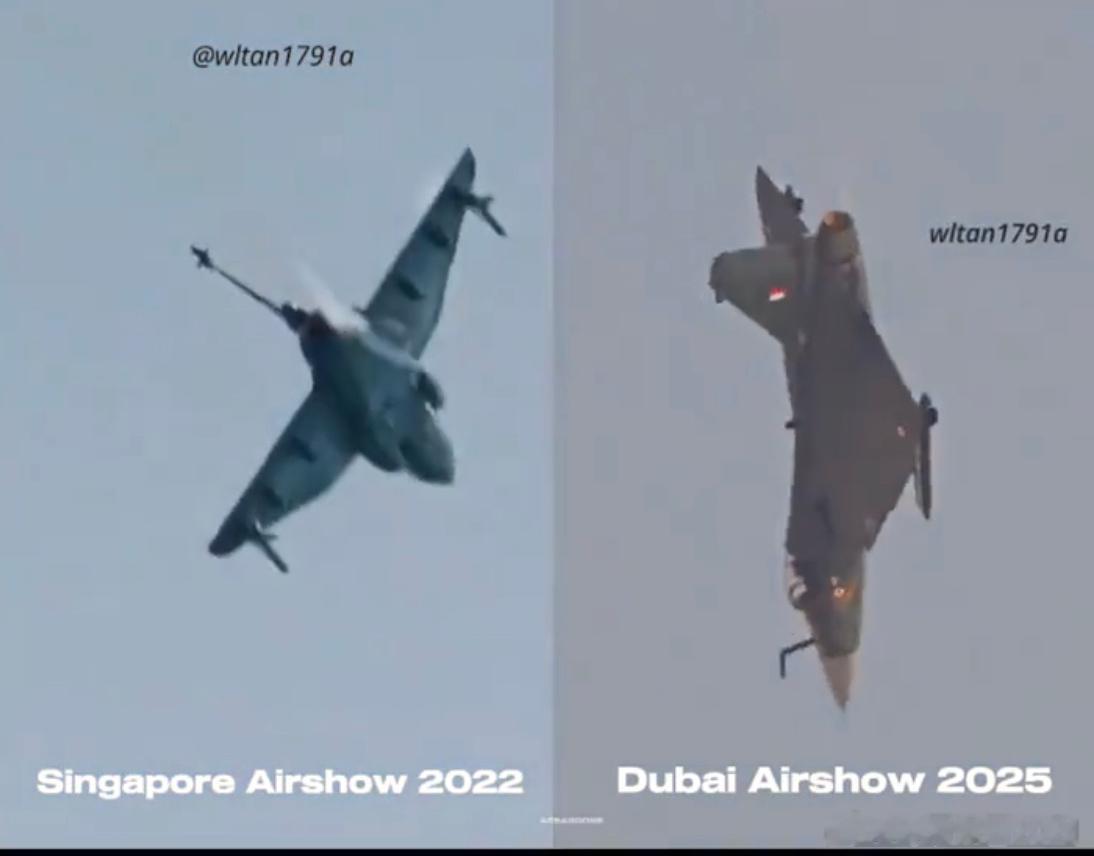 LCA迪拜航展2025坠毁原因初步分析(以空难调查结论为准)➡️图1(图源wltan1971a)左边是2022新加坡航展表演的LCA,图2(图源银杏叶文创工作室)是这次迪拜航展坠毁的LCA均出现右侧油液雾状喷射,应该不是发动机故障、如果是发动机故障,新加坡航展表演的LCA应该同样坠毁。初步推断是LCA的油箱压力过大排出部分燃油减少环控系统压力。➡️图3和图4是被军迷天花板杰哥看过的那架穿尿不湿漏油的LCA,编号LA-5025、而不是图5这次坠毁的LA-5026。LCA其实比幻影2000气动先进,图6它主翼有10个控制面,采用外凸双三角翼低空稳定性高于纯三角翼。➡️从图7(图源银杏叶文创工作室)LCA触地爆炸前最后的姿态看,前缘襟翼已经大角度下垂,说明机翼的液压系统没有完全失效,控制面仍然具备操纵能力。⭐️按照流体力学的原理,下垂前缘襟翼使机翼前缘向下偏转,增大翼型弯度,改变翼面压力分布,使上翼面气流流速加快,下翼面气流流速减慢,上下翼面压力差增大,从而显著提高升力。但是图1可知LA-5026的滚转角速度明显比新加坡航展的LCA慢,观看坠毁的视频飞行员是在倒飞未改平状态下提前拉杆。倒飞状态下拉杆会使飞机沿倒飞的轨迹加速下降,高度迅速损失,此时只会加速俯冲掉高度、尽管最后一刻LA-5026机体改平了,此时距离地表高度太低已经失去了逃生机会。倒飞时飞行员已承受负过载,拉杆会进一步增加负过载,血液涌向头部,可能出现红视甚至黑视,影响飞行员的视觉和操作能力。➡️倒飞时燃油供应依赖特殊装置,拉杆导致的剧烈机动可能使燃油供应不稳定,甚至引起发动机熄火。根据图5、图8和现场视频F404IN始终未发生喘振,发动机也没喷零件,保持了加力燃烧室倒飞正常工作(图5明显的加力尾焰)。因此图9纯属胡说八道。综上所述:本次LCA航展事故与飞行高度偏离表演预案最低高度限制,飞行员拉杆偏早等人为因素关系相对更大、LCA设计年代太早(1983年立项)对飞行安全需要的多重液压冗余考虑较少仅有一套备份液压的原始方案缺陷也促成了悲剧的发生。图12为此次参加迪拜航展的三架LCA光辉。