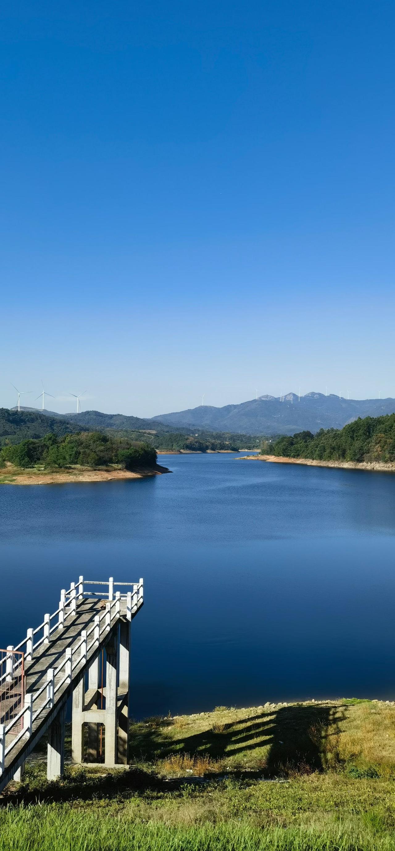 柿红坠在旧檐的风里, 湖光把山影浸得清透, 老墙的窗棂裁碎蓝天—— 这趟乡野的晴