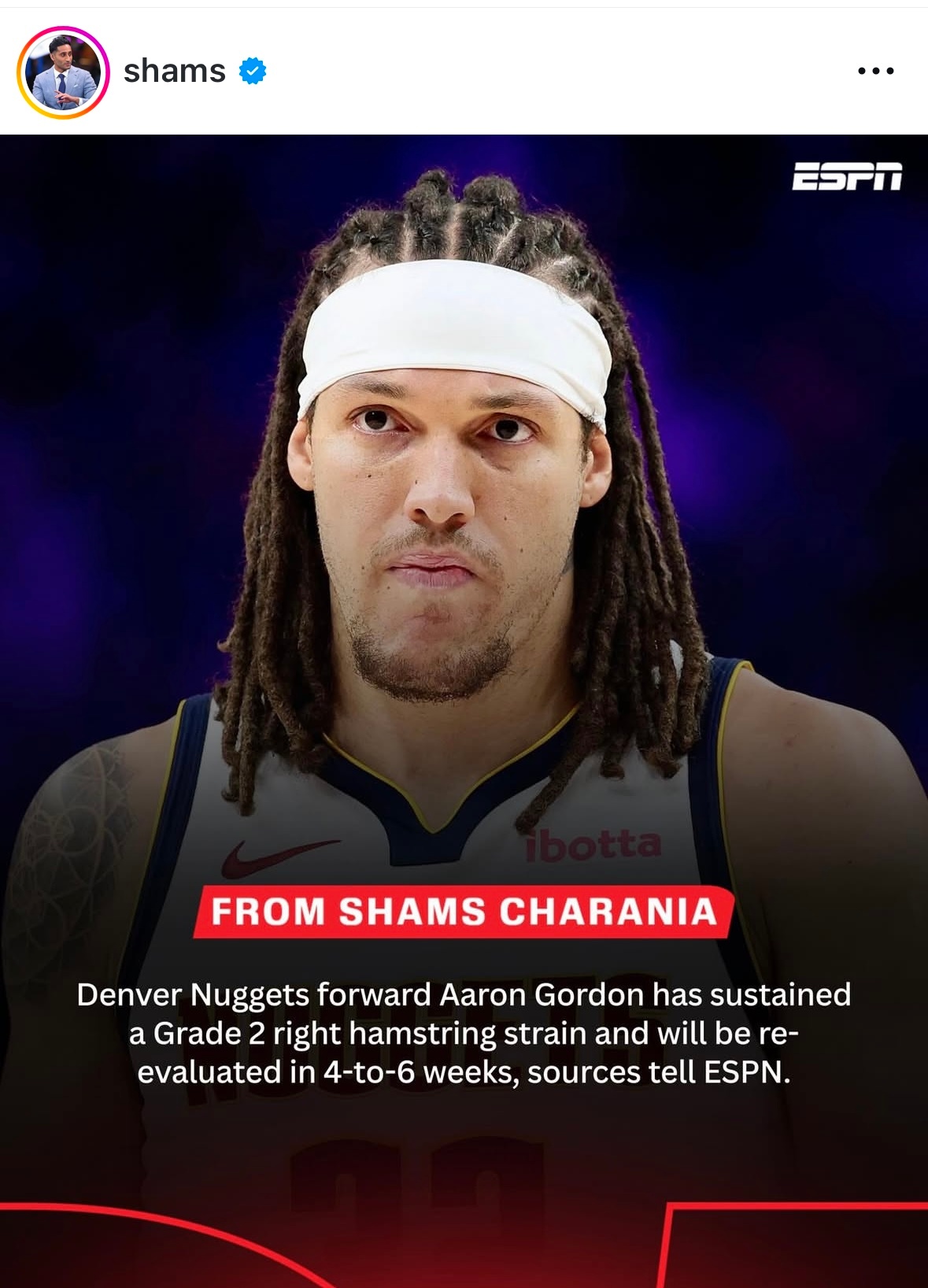 Shams:杜兰特因处理家庭事务,将缺席接下来两场比赛。Shams:戈登右腿腿筋二级拉伤,4-6周后复查伤势。