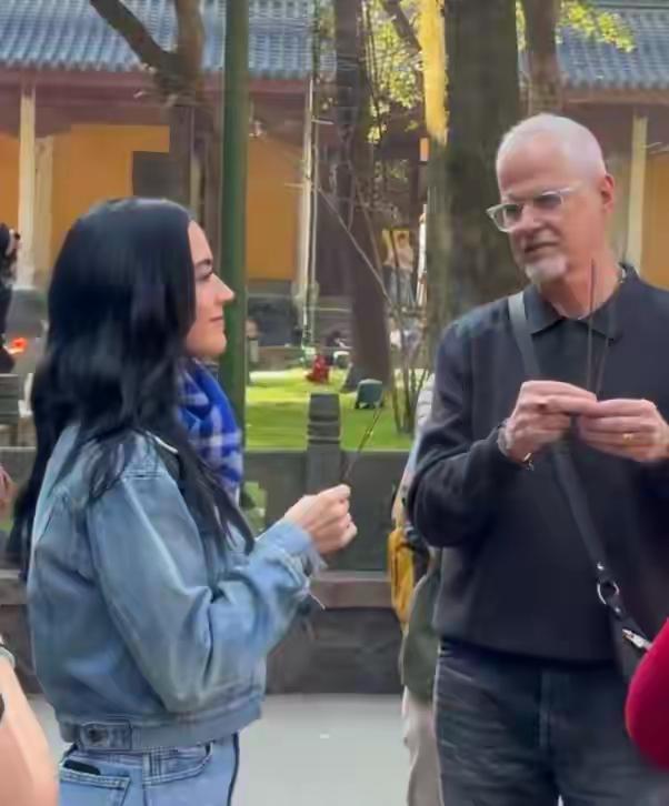 水果姐也来灵隐寺许愿了!41岁Katy Perry牛仔套装现身杭州,状态超能打🔥 演唱会刚结束就直奔灵隐寺,虔诚上香、悠闲逛寺,还大方和粉丝合影。现场游客激动到语无伦次还要强装淡定,简直演我见偶像的样子🤣 她可是被粉丝封为“北美第一体育生”的顶级唱将,演唱会吊威亚玩高难度动作不在话下!这次在杭州连唱两场,实力依旧在线。 值得一提的是,灵隐寺从12月1日起就要免门票了!水果姐这是赶上了最后一波购票参观,运气不错~ 水果姐灵隐寺许愿 KatyPerry杭州演唱会