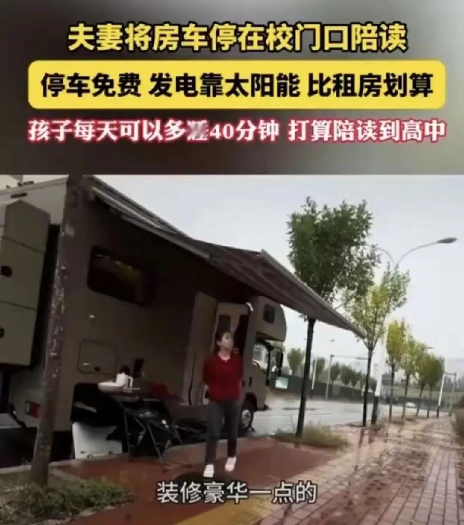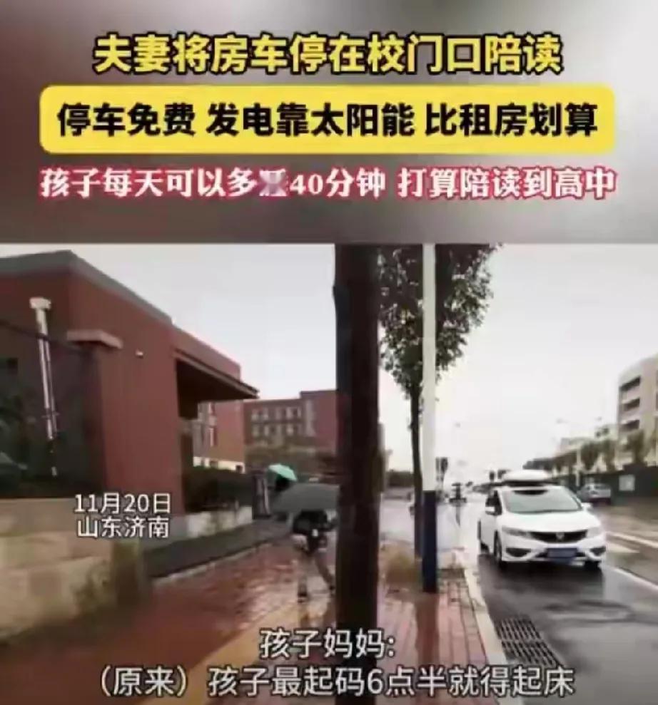 家人们谁懂啊!山东济南这对夫妻太绝了!为让孩子每天多睡40分钟,直接把房车停校门口陪读。停车、发电都不用花钱,比租学区房划算太多。 孩子上学不用早起赶路,能睡饱,这对长身体的孩子来说太重要了!网友们都羡慕哭了,直言这才是真正的幸福。 这哪是陪读,分明是“移动学区房”新玩法!不牺牲生活,不苦孩子,把孩子需求放首位。 那些还在纠结学区房、逼孩子早起的家长,真该学学,有时候换个思路,就能给孩子更好的成长环境,这波操作必须点赞! 陪读房车 学生陪读房 济南房车出租