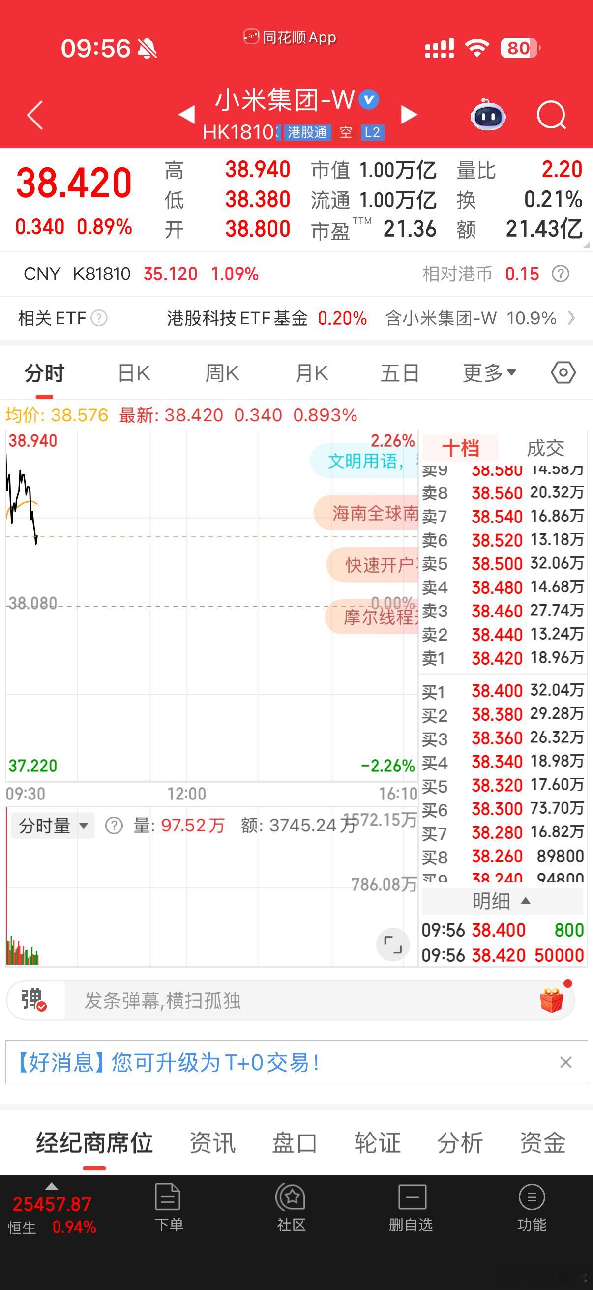 小米和赛力斯,今天开盘都差不多,都是先拉了一点点,然后又回到38 和 123。难道说这就是底了兄弟们?