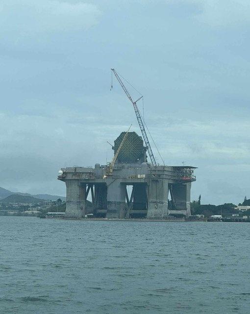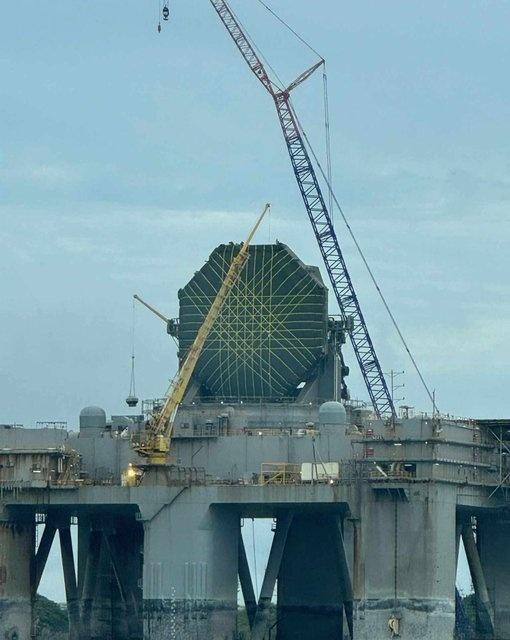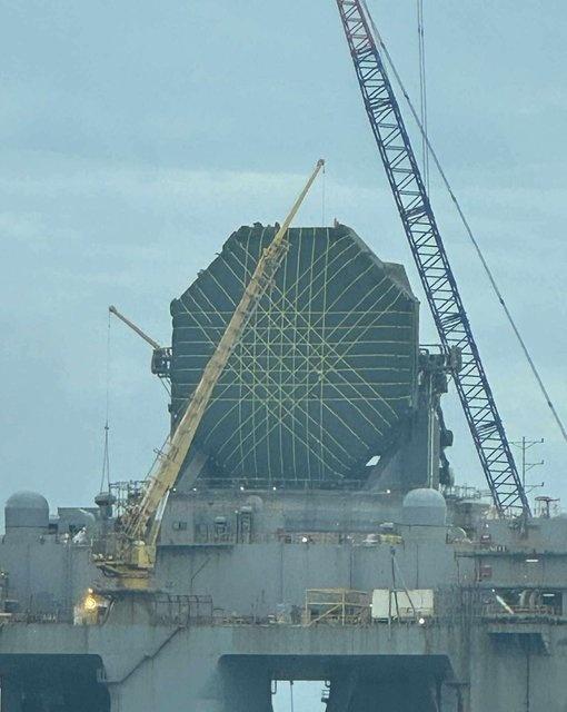 珍珠港的美军海基X波段雷达SBX-1远程预警雷达。 圆顶已移走,雷达阵列暴露在外,进行维护。 曾经看到过它。 烽火问鼎计划